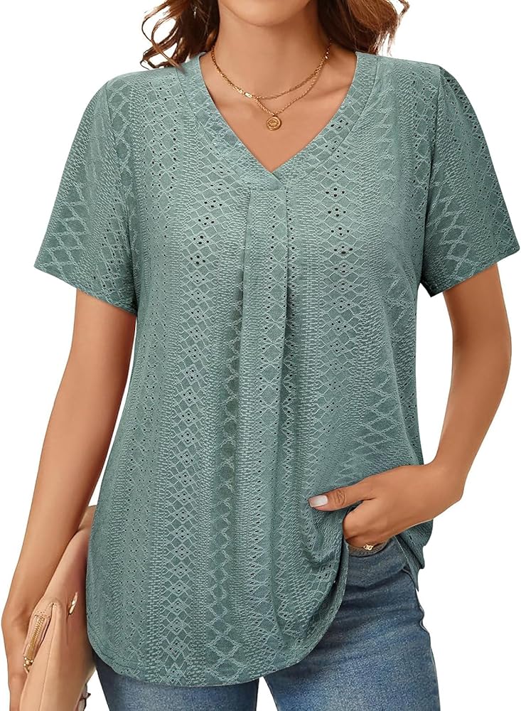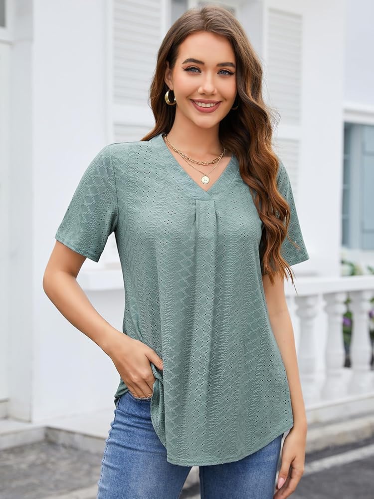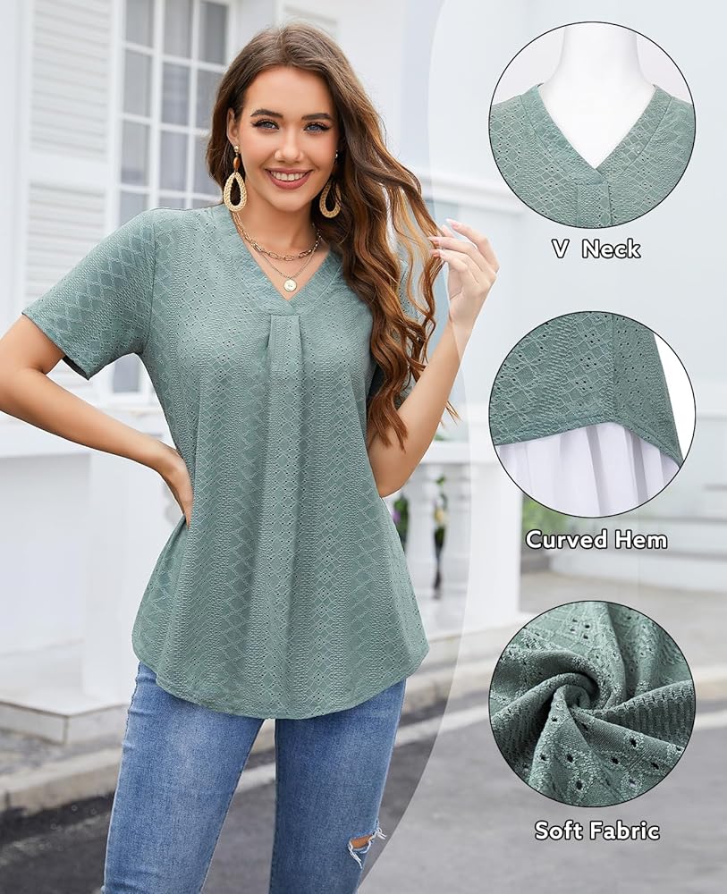 ❤【تصميم فريد】يسلط التصميم الأكثر تميزًا الضوء على المواسم مع هذا القميص النسائي! تتميز القمم ذات الألوان الصلبة بتفاصيل جيدة جدًا. ستظهر الرقبة الكلاسيكية على شكل حرف V عظام الترقوة الجميلة، والطيات الموجودة في المقدمة تخفي بطنك والطول المناسب يغطي الوركين. هذه القمصان النسائية ذات الأكمام القصيرة تجلب البرودة وهي قطعة يجب اقتناؤها في الصيف