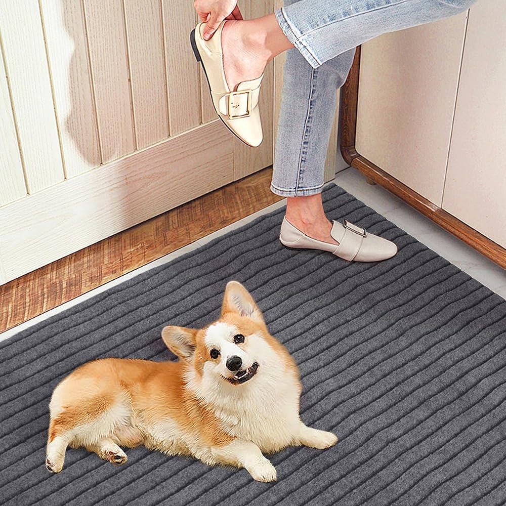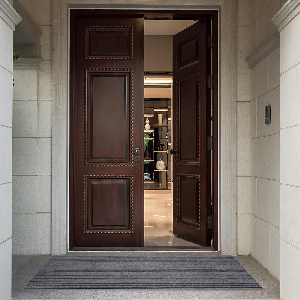مقاومة للانزلاق والبقع - ممسحات الأرجل Uyoyous مصنوعة من مادة البوليستر عالية الجودة، والتي تساعد على احتجاز الأوساخ والثلج والملح والمطر وغيرها من الحطام الخارجي داخل الأخاديد المنقوشة وتجف بسرعة لأداء حتى في طرق الدخول ذات حركة المرور العالية. يساعد الجزء الخلفي المطاطي على إبقاء السجادة في مكانها لمنع الانزلاق والتعثر والسقوط.