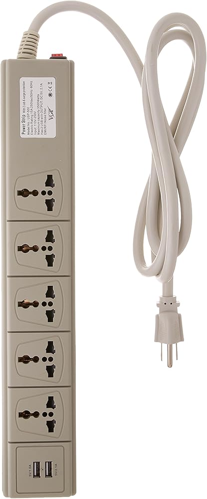 This advanced Universal power strip is wired with grounded USA Plug with built-in surge protector to protect your equipment from power surges, thunder and Lightning which can damage electronics
