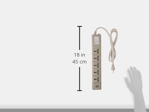 Multi-outlet Universal Power Strip with 2 USB Ports and 5-Outlets 110 Volt to 250 Volt Surge Protector, 3750 Watts 15 Amp, Worldwide Use with USA Plug (USP500)