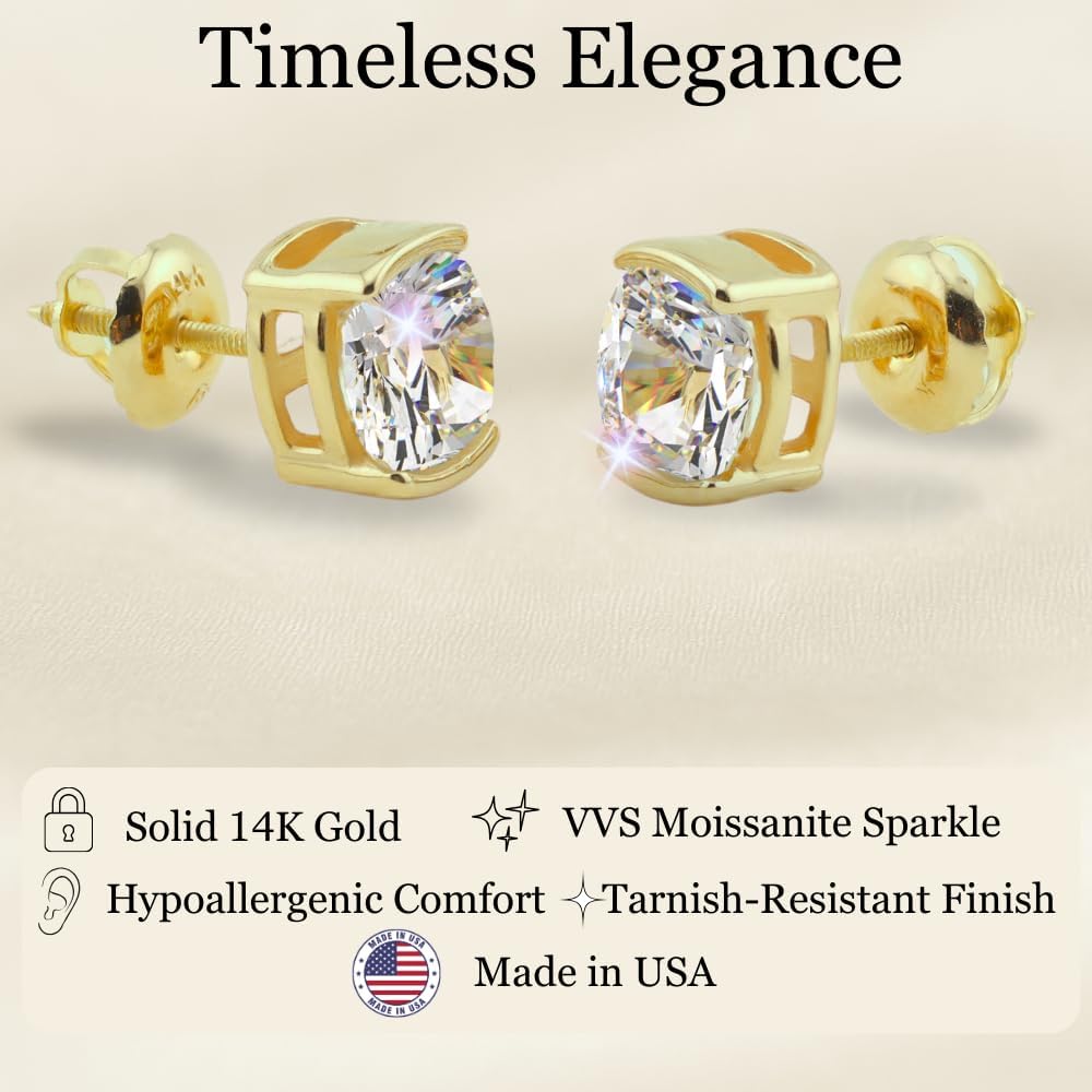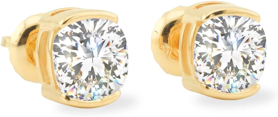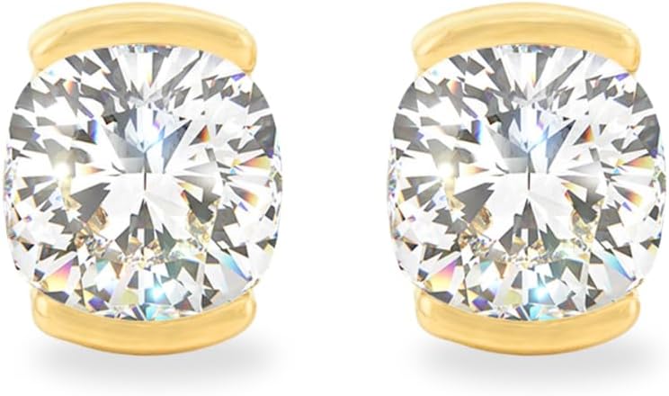 💎ABOUT THE JEWELRY: These Round Cut Moissanite Stud Earrings feature a partial (semi/half) bezel setting for a modern and unique look. The unique design allows extra light to enter the stones, increasing the sparkle and fire of the stones. Crafted from 14K Solid White Gold, each 6.5mm stone has a Diamond Equivalent Weight (DEW) of 0.75 Carats, totaling 1.5 CTW for the pair. These Moissanites shine bright with a VVS1 Clarity, D Colorless Color, and Excellent Cutting Grade. Made in the USA.