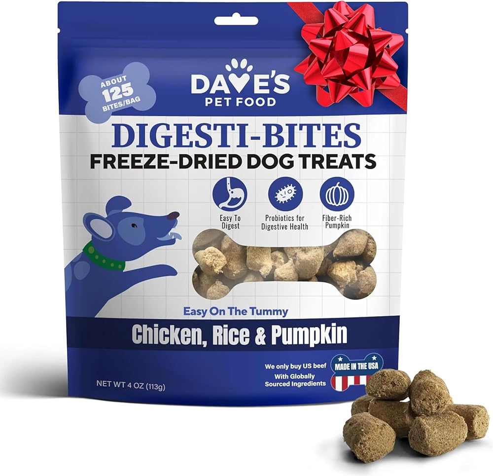ديفز أغذية الحيوانات الأليفة دايجستي بايتس سهلة الهضم، مكافآت الدجاج المجفف بالتجميد مع ألياف اليقطين والبروبيوتيك، مغذية كاملة ومتوازنة، أطعمة الكلاب المجففة بالتجميد، مصنوعة في الولايات المتحدة الأمريكية (4 أونصة)