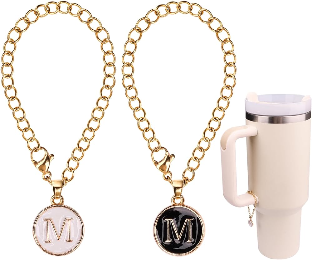 【Unique Creativity】Our letter charm is a double-sided pattern design adding a cute little bling to your tumblers with a handle. Easier to quickly identify whose cup is when gathering. Our letter charm is detachable, easy to DIY. (Note: excluding cup/tumbler, only including 2pcs chains&letters)