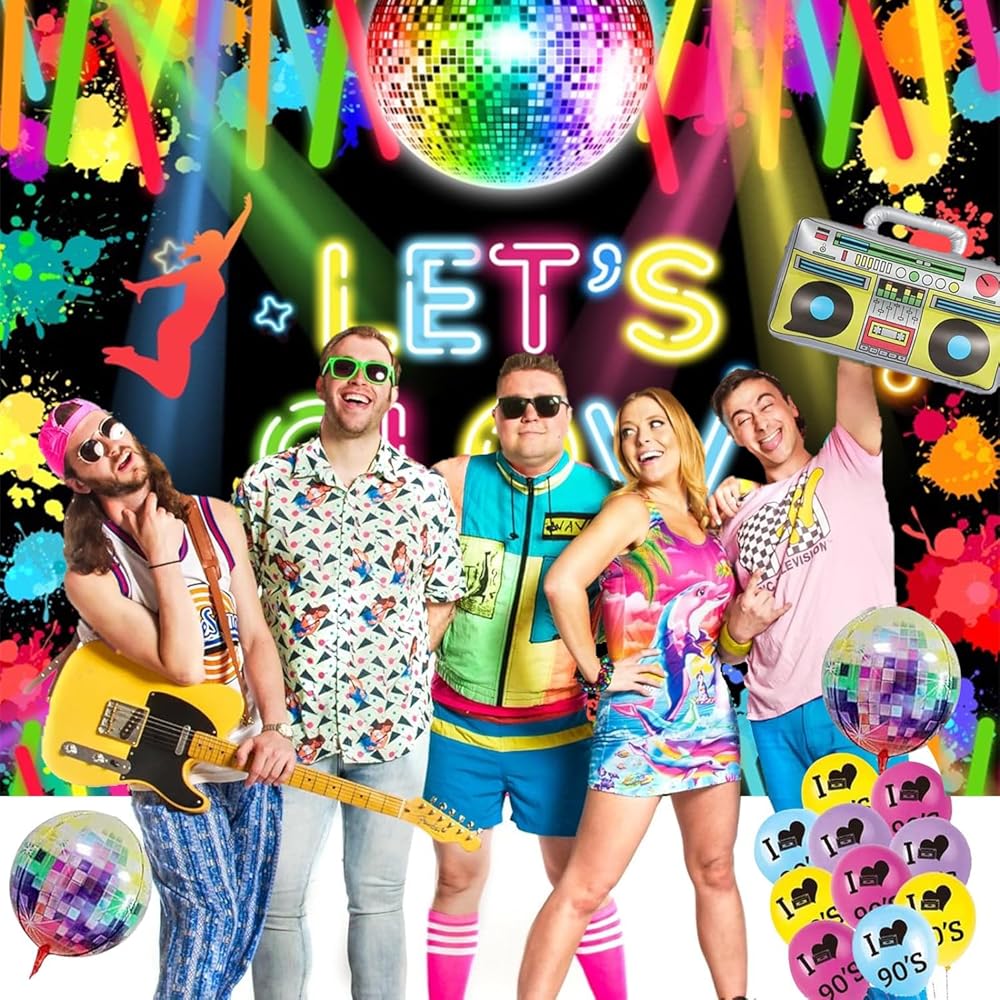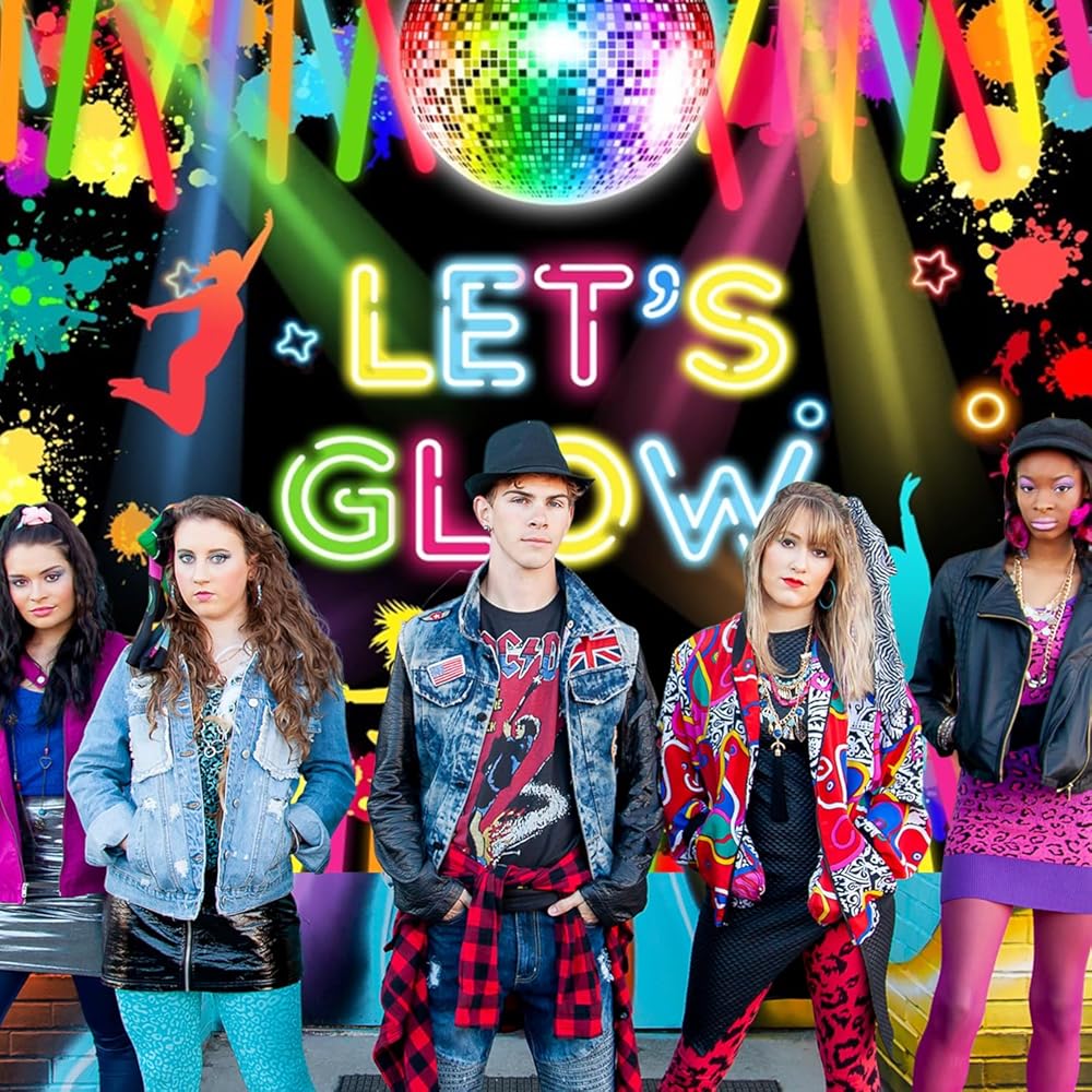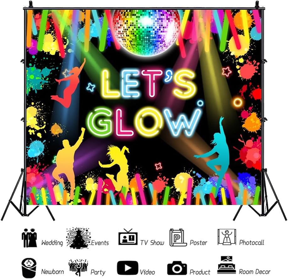 نيون توهج خلفية الحفلة دعونا نتوهج في الظلام خلفية التصوير الفوتوغرافي الملونة الكتابة على الجدران رش الطلاء الرقص تحت عنوان الديكور راية صور كشك الإمدادات 10x8ft