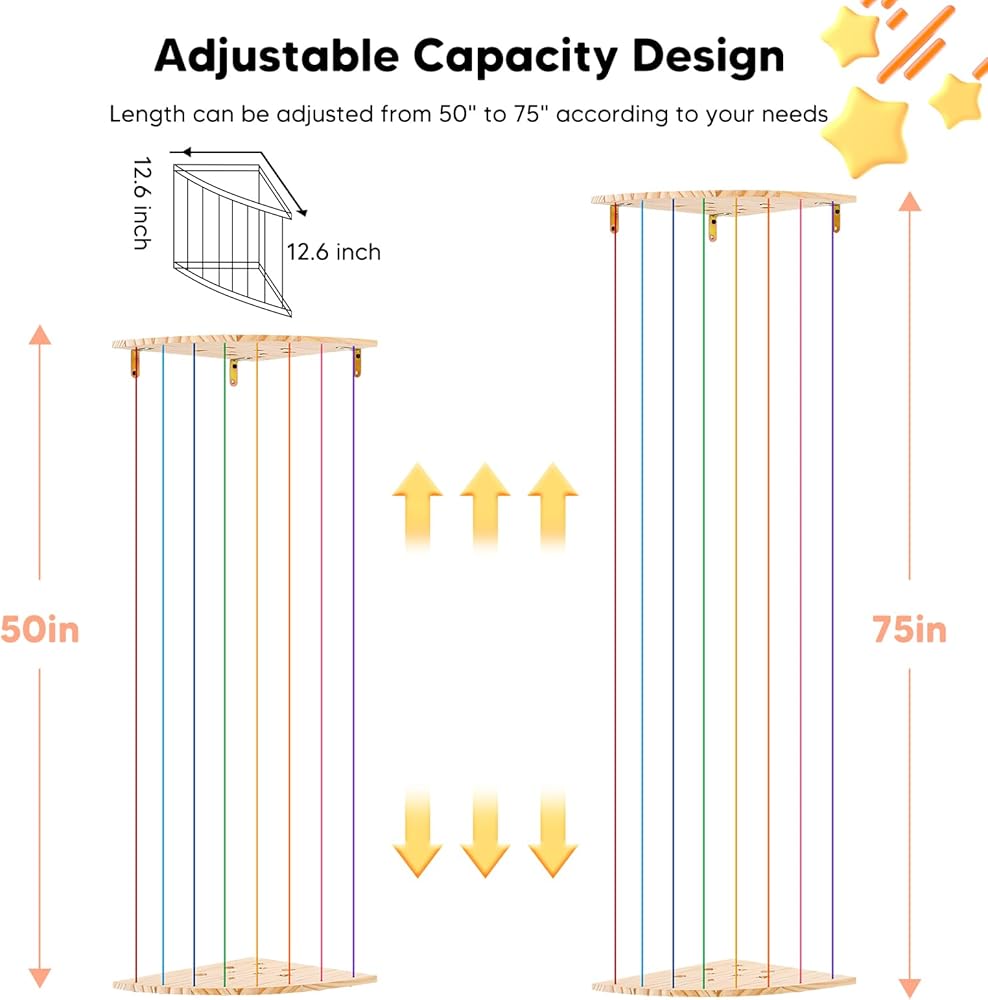 🎀[حامل حيوانات محشوة ذو سعة كبيرة قابل للتعديل] يمكن تمديد رف تخزين الألعاب من 50 بوصة إلى 75 بوصة، يمكنك اختيار موضع التثبيت والارتفاع لمنظم ألعاب الأطفال بمرونة، مما يسمح للأطفال بالتحكم بسهولة في ألعاب الحيوانات المحشوة وتطويرها. عادة جيدة لتنظيم الألعاب.