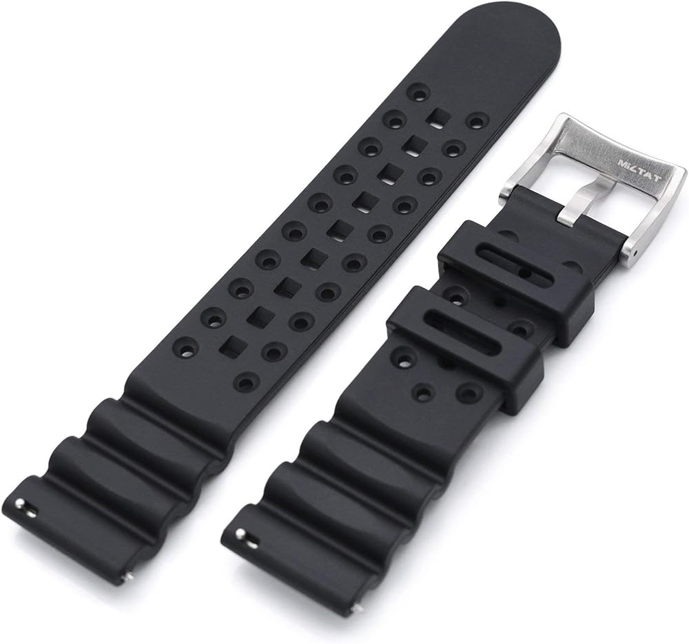 حزام ساعة MiLTAT 22 مم سريع الإصدار، حزام غواص مطاطي أسود FKM، إبزيم مصقول