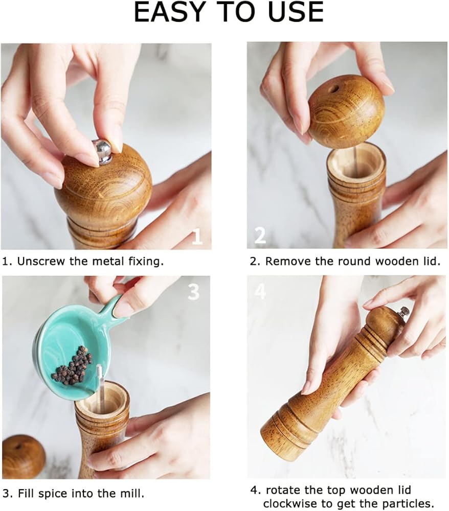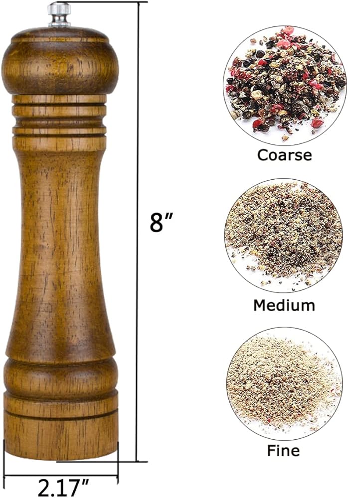 ★ Easy to Use and Refill : This salt grinder fits your hand with perfect size of 8 inches tall and 2.17 inches wide. The wide opening body ensures you filling spices easily. Simply unscrew the metal fixing, remove the top, then fill in the grinder with your favorable spices.