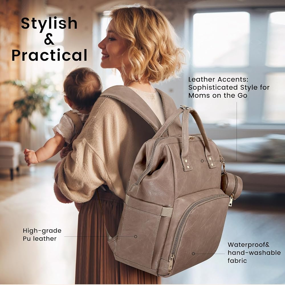 مظهر عصري وهدية مثالية: تمتزج اللمسات الجلدية بسلاسة مع الملابس الكاجوال والملابس الرسمية، مما يضفي رقيًا بسيطًا مثاليًا للأمهات المشغولات أثناء الحركة. لا تعمل جمالياتها الراقية وموادها المتميزة على رفع مستوى الموضة اليومية لمستخدميها فحسب، بل تضعها أيضًا كخيار هدية رائع لحفلات استقبال المولود الجديد أو أي مناسبة خاصة. ستكون حقيبة الحفاضات هذه رفيقًا موثوقًا به منذ نزهة الطفل الأولى وحتى سنوات نموه.