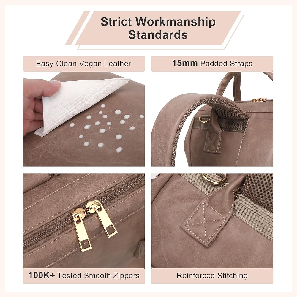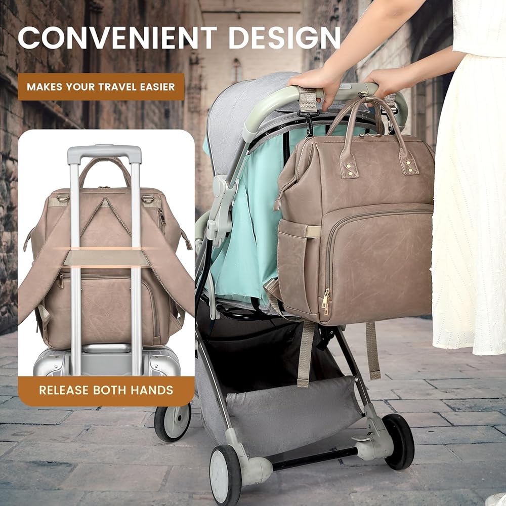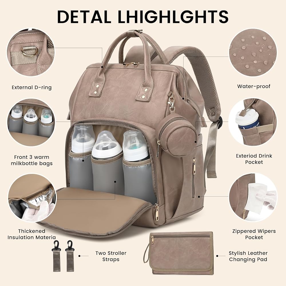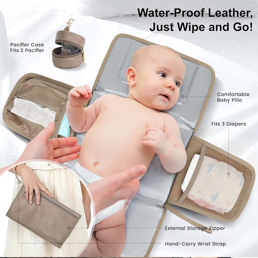 استخدامات متعددة وإكسسوارات عملية: حقيبة الطفل مثالية للرحلات اليومية أو السفر أو كحقيبة حفاضات ويمكن أن تنمو مع عائلتك. يمكن ربطها بشكل آمن بعربة الأطفال وتأتي مع وسادة تغيير الحفاضات وحقيبة اللهاية. يتميز الجزء الخارجي من وسادة تغيير الحفاضات بجلد أنيق وجذاب، بينما تم تصنيع الجزء الداخلي من مادة PEVA المقاومة للماء، مما يضمن سهولة التنظيف من الداخل والخارج. باعتبارها ضروريات للأطفال، فهي تلبي احتياجات السفر للأمهات بشكل مثالي.