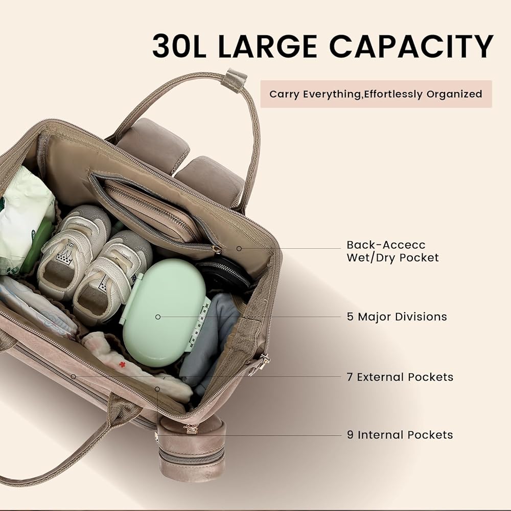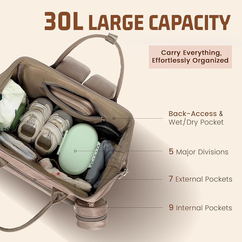 سعة واسعة وتخزين متعدد الوظائف: يبلغ قياسها 9.4 × 14 × 16.5 بوصة بسعة 35 لتر، وتتميز حقيبة ظهر الحفاضات هذه بـ 16 جيبًا مصممًا بعناية، بما في ذلك جيب رطب/جاف يمكن الوصول إليه من الخلف وثلاثة جيوب معزولة مع عزل سميك للحفاظ على الزجاجة أو الطعام. درجات الحرارة. سعة كبيرة تحمل بسهولة جميع مستلزمات الطفل الأساسية والأغراض الشخصية للوالدين، مما يضمن تنظيمًا سهلاً ووصولاً سريعًا. مثالية لحفظ كل ما تحتاجه في مكان واحد.