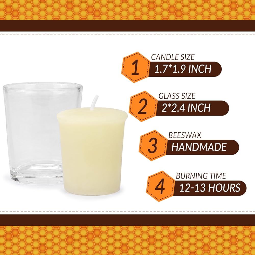 شمع النحل الطبيعي: هذه الشموع النذرية مصنوعة من شمع النحل الطبيعي بنسبة 100% وفتيل قطني عالي الجودة لا يحتوي على الرصاص أو معادن أخرى، ويمكن أن تمنحك رائحة طبيعية فريدة من نوعها وتطلق الأيونات السالبة، مما يوفر بيئة نظيفة.