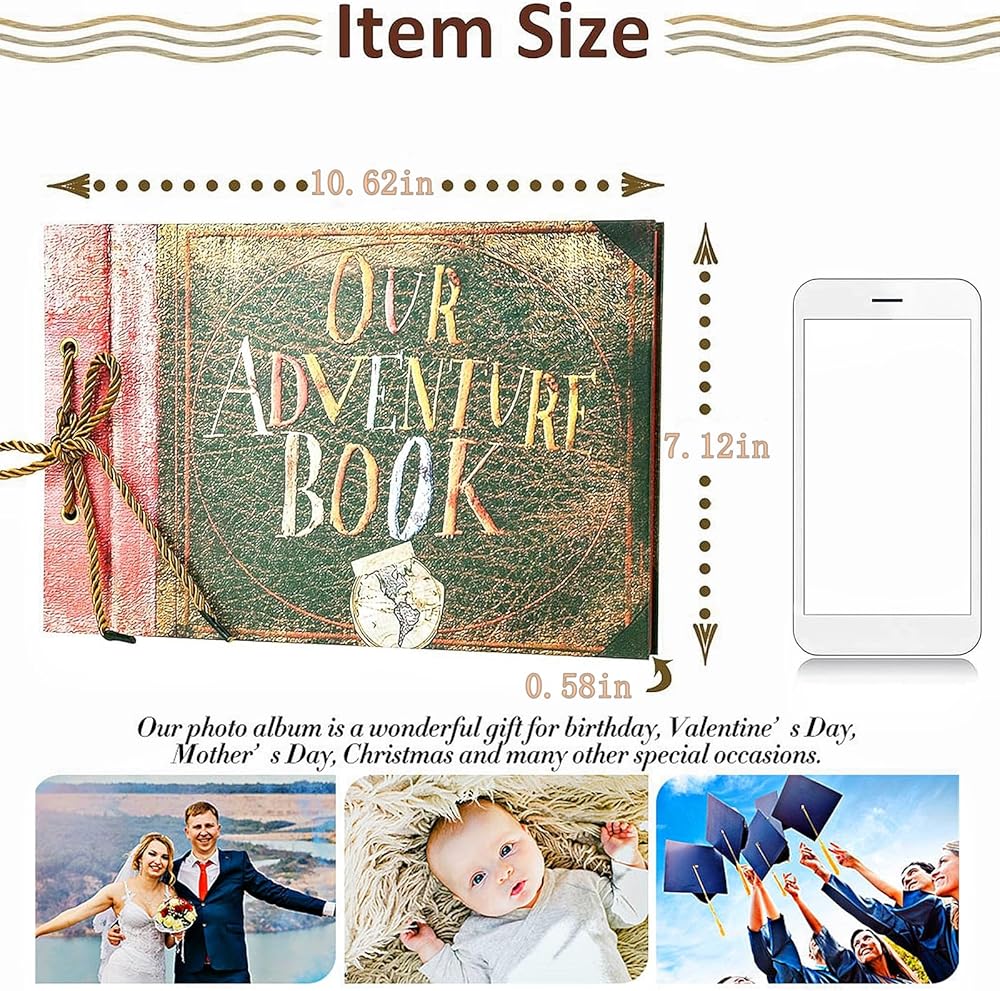 🔥【حجم وسعة كبيرة】يتميز كتاب المغامرة بأبعاد 9.02*7.72 بوصة مع 74 ورقة (148 صفحة) قادرة على استيعاب أكثر من 300 صورة. تحتوي على حقيبة ورقية متينة في الخلف، مثالية لتخزين التذاكر والطوابع وتذكارات السفر الأخرى. بالإضافة إلى ذلك، يمكن استخدام كتاب المغامرة هذا كدفتر ملاحظات، حيث يتميز بصفحات ناعمة وقابلة للكتابة مثالية لتدوين الملاحظات والأفكار والذكريات بدقة. إنه مناسب تمامًا لتوثيق رحلاتك داخل صفحاته.
