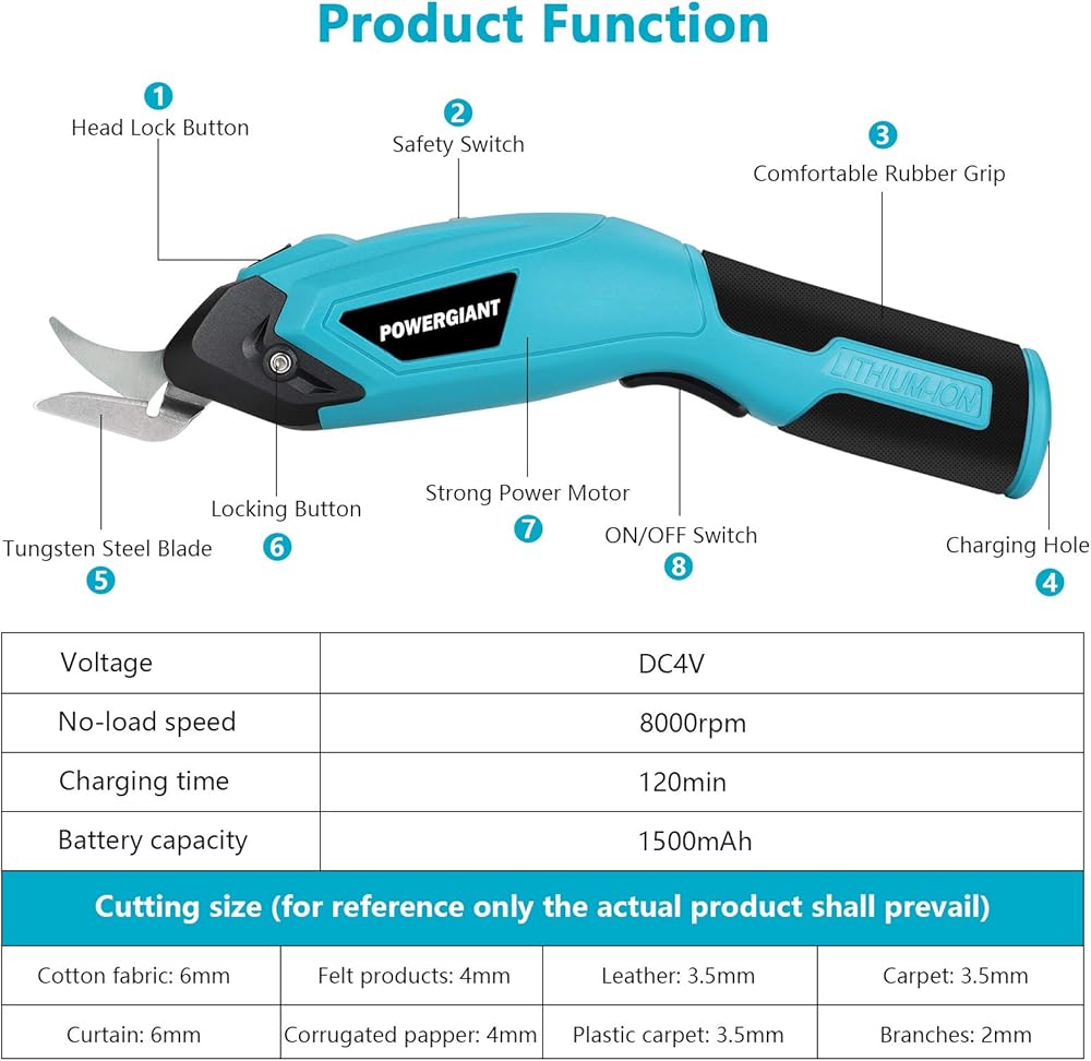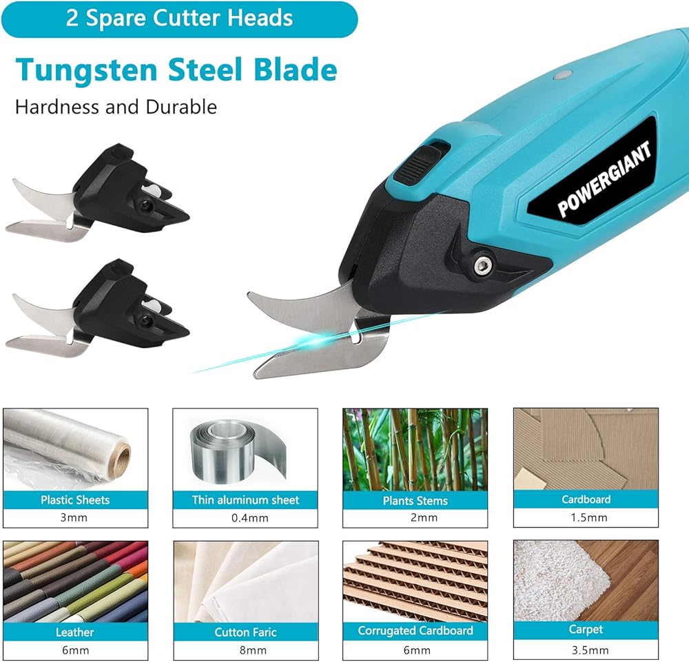 ✂ ثلاث شفرات فولاذية تنجستين حادة وصلبة متضمنة✂: يأتي المقص اللاسلكي الخاص بنا مع 3 شفرات حادة وصلبة ومتينة من فولاذ التنجستين (واحدة مثبتة في المقص وشفرة هدية إضافية)، والتي تمكنك من قطع القماش والكرتون واللوحة الكريستالية. والقماش والجلود والورق وحتى السجاد والمطاط بسهولة وبسرعة لتوفير الكثير من وقت العمل.