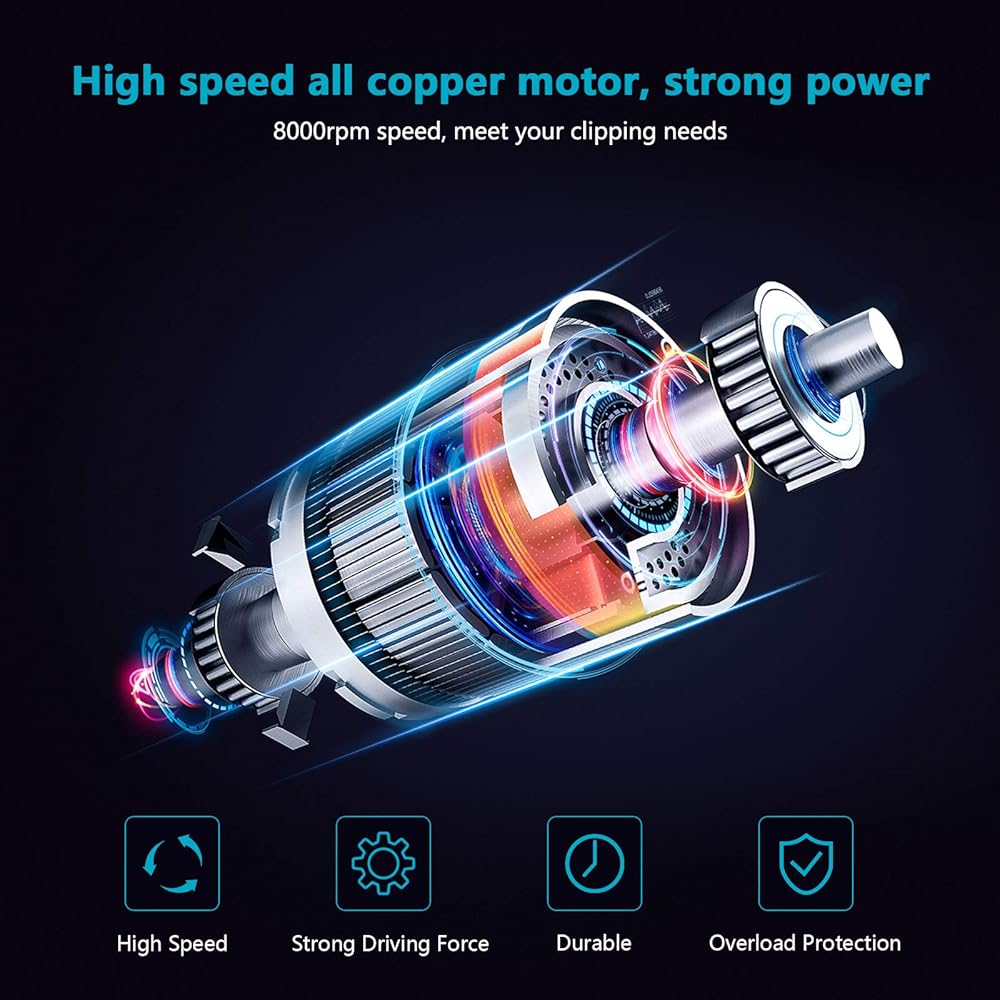 ✂ تصميم مفتاح أمان مطور ✂: يحتوي هذا المقص الكهربائي ذو المقبض المريح على مفتاح أمان في الأعلى والذي يمكن أن يمنع أي استخدام عرضي. قبل أن تسمح للمقص اللاسلكي بالعمل، يرجى التأكد من أن ضوء مفتاح الأمان باللون الأحمر، وإلا فلن يعمل.