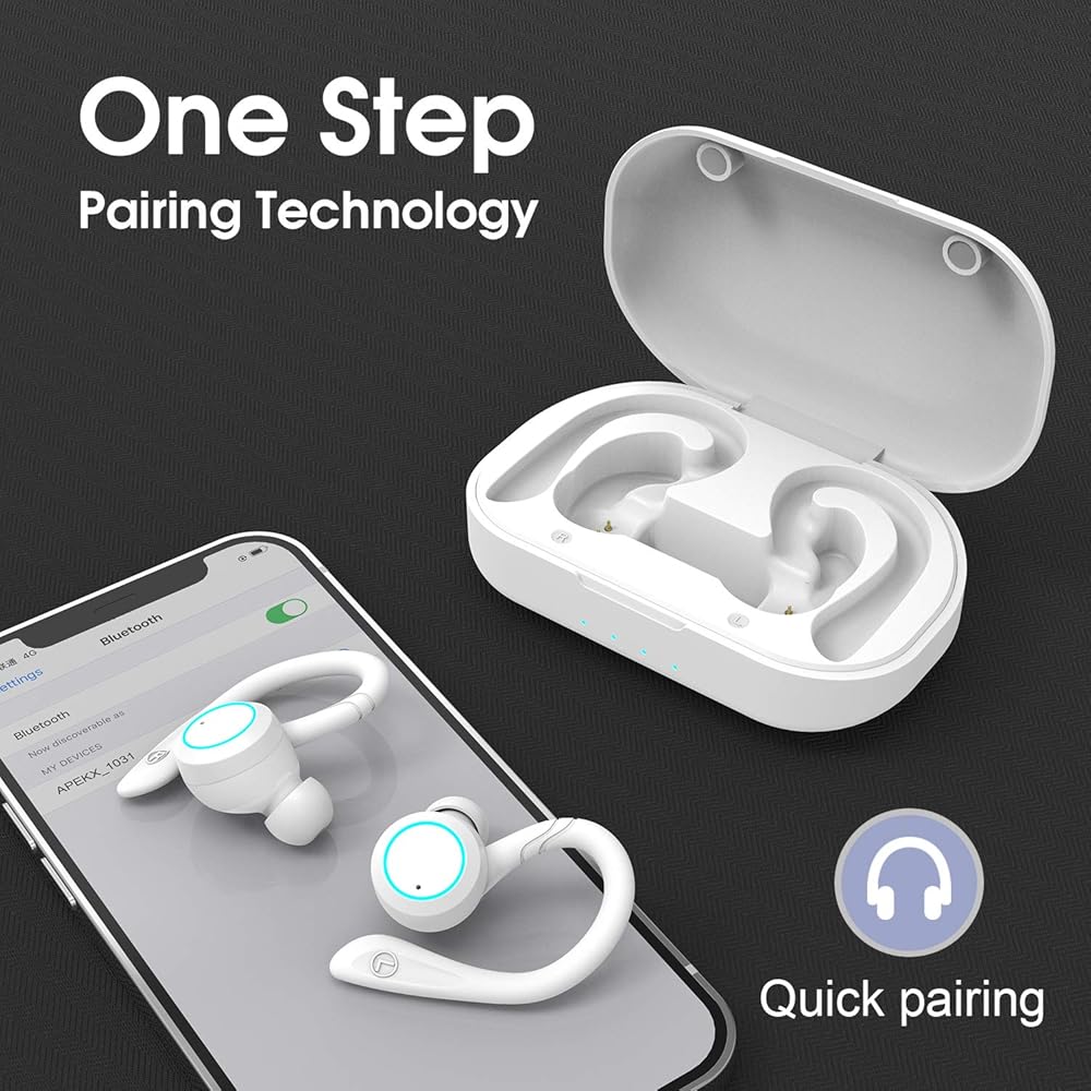 【تصميم رياضي】سماعات أذن ستيريو لاسلكية حقيقية من APEKX تمنحك تجربة خالية من الأسلاك وبدون استخدام اليدين. ملاءمة آمنة ومريحة وتصميم IPX7 المقاوم للماء يجعل سماعات الأذن مثالية لممارسة الرياضة. بدون سلك متاعب، حرر يديك أثناء ممارسة التمارين لفترات طويلة.