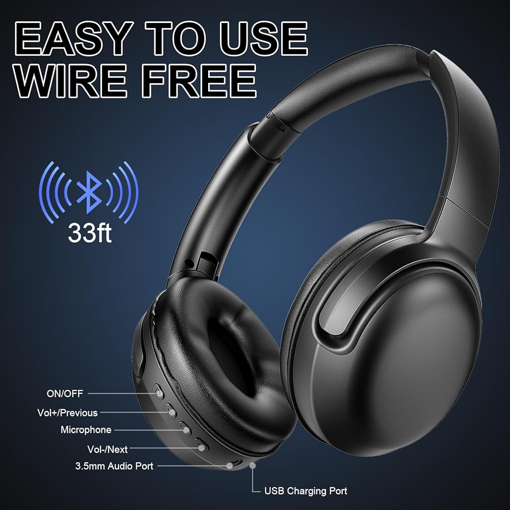 These over-ear headphones deliver immersive audio and powerful noise cancellation for your music and calls. The soft memory foam ear cushions create a comfortable, noise-isolating seal around your ears. Bluetooth connectivity allows for wireless streaming up to 30 feet from your devices. Intuitive touch controls on the earcups make it easy to play, pause, skip tracks or answer phone calls without fumbling for your phone. Advanced active noise cancellation blocks out ambient noise on airplanes, trains and busy offices. High-fidelity 40mm neodymium drivers provide clear treble and deep bass for all genres. Long-lasting battery life lets you enjoy up to 20 hours of wireless playback per charge. Folding design makes these headphones compact for easy storage in the included carrying case.