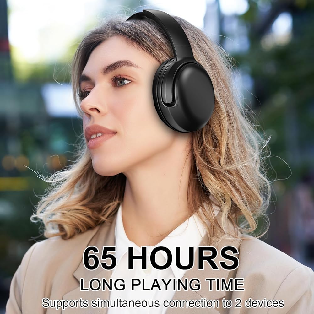 سماعة رأس لاسلكية فوق الأذن، سماعات رأس بلوتوث، فوق الأذن، لاسلكية، أسود، لهواتف iPhone، iPad، Android
