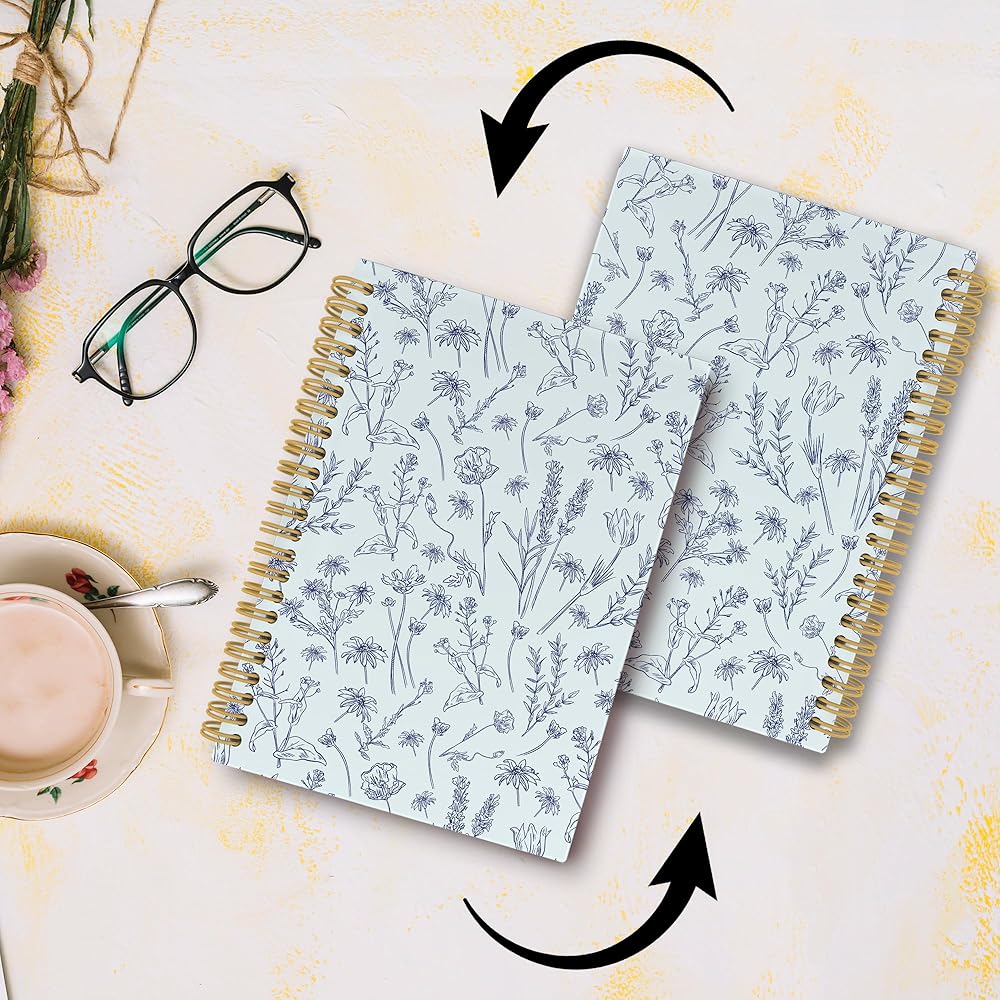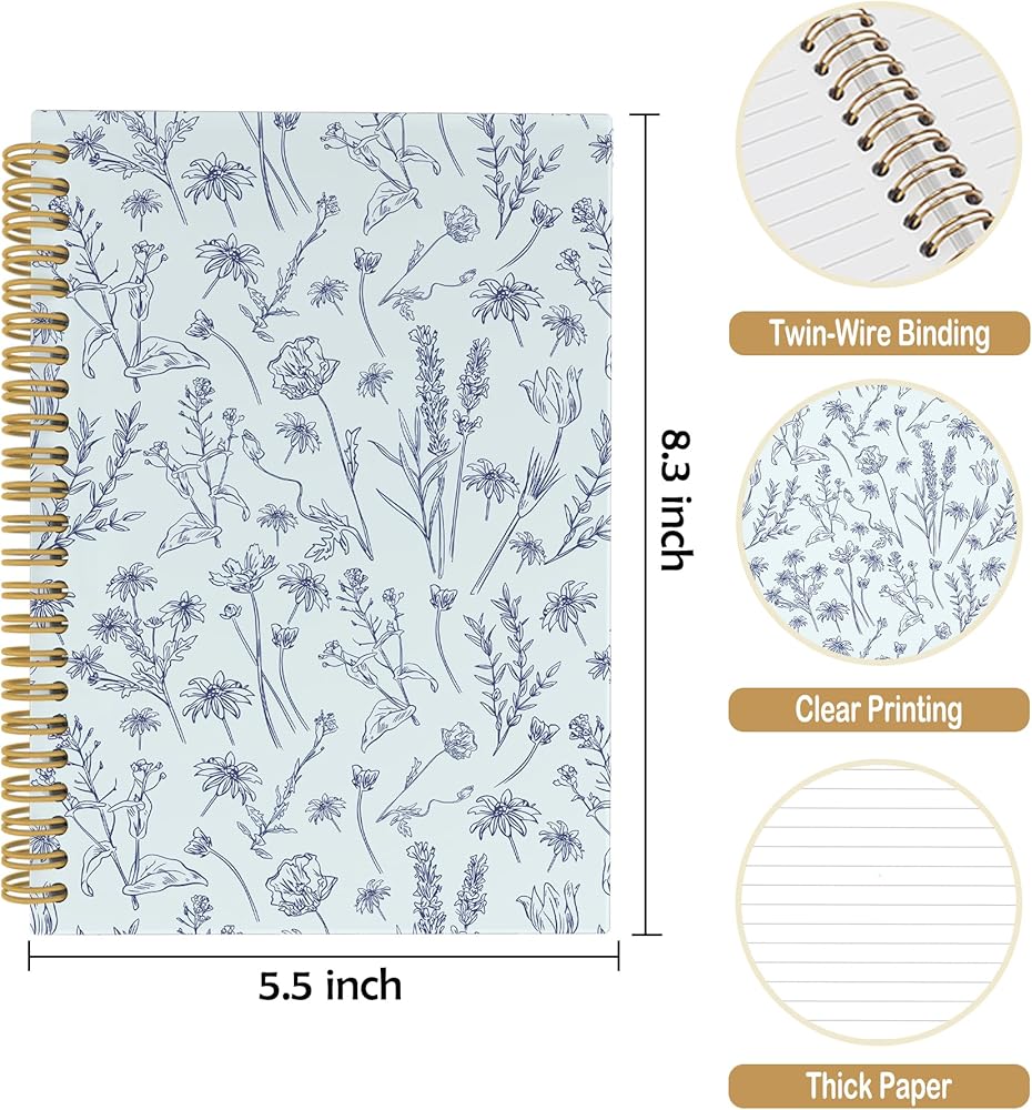 • 【Spiral Bound】The spiral notebook features a double-wire binding with gold threads, ensuring that the wires remain resilient and do not loosen easily, providing smooth page-turning. The notebook can be folded 360°, enhancing the writing experience.