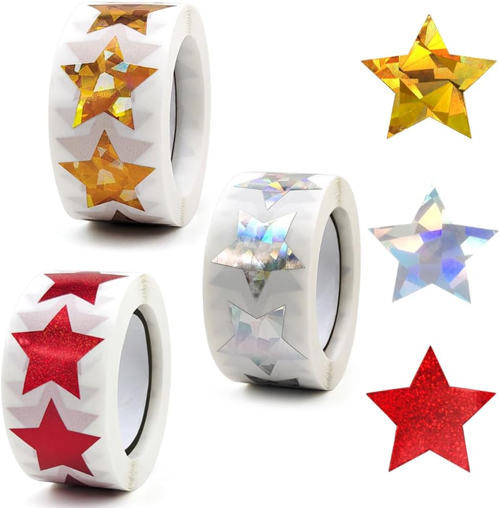 ⭐Packing list: You will receive set of 1500 counts foil metallic star stickers, 3 rolls in total, each roll comes with 500 stars, 1inch in diameter(gold + silver + red).