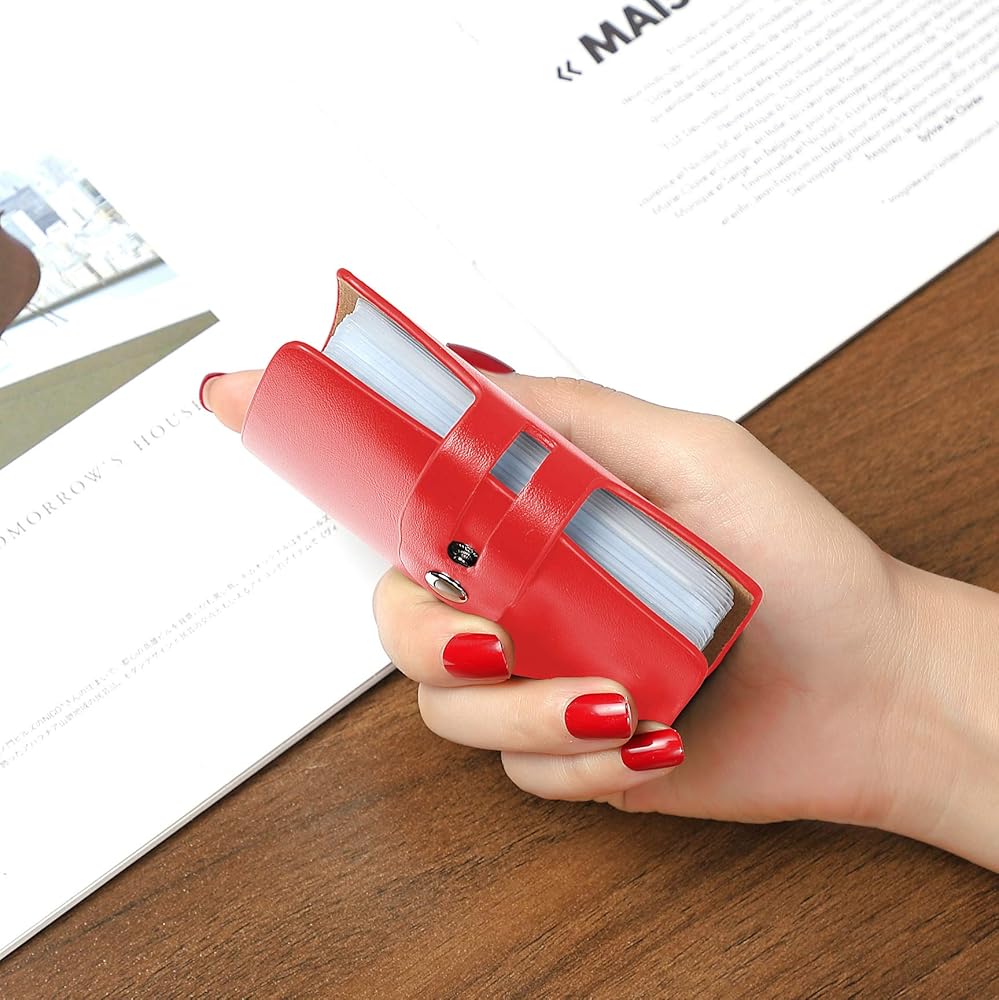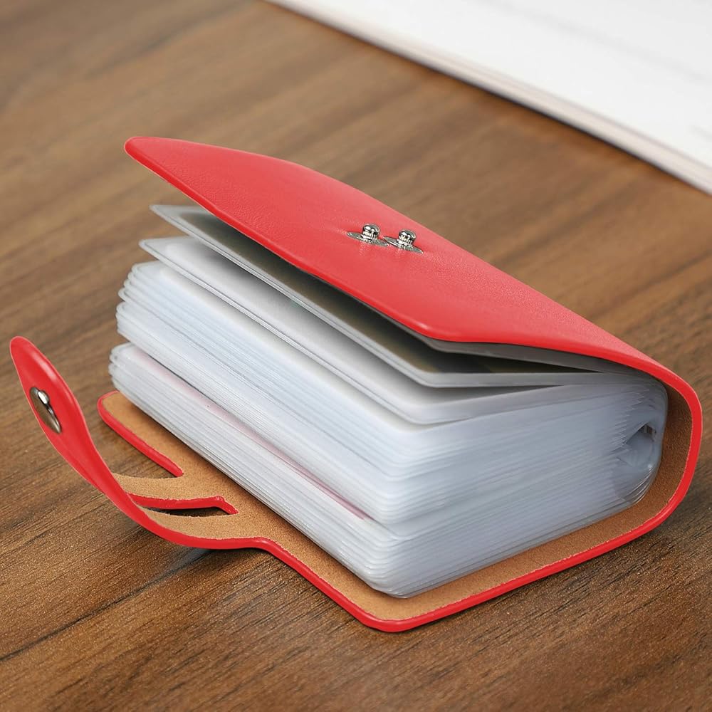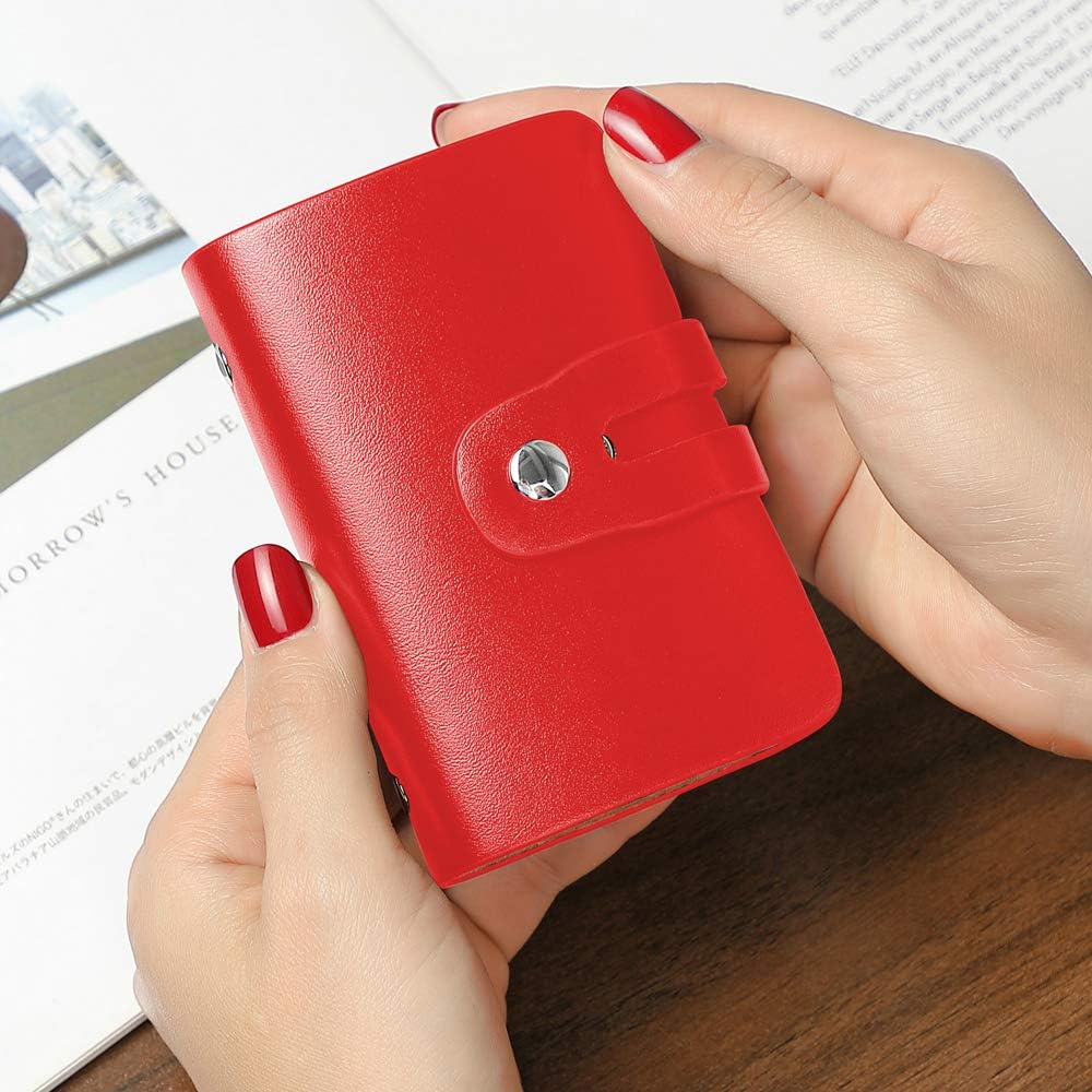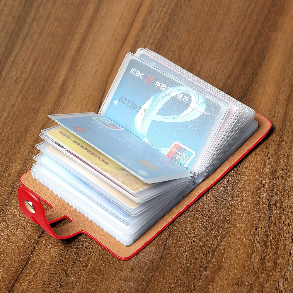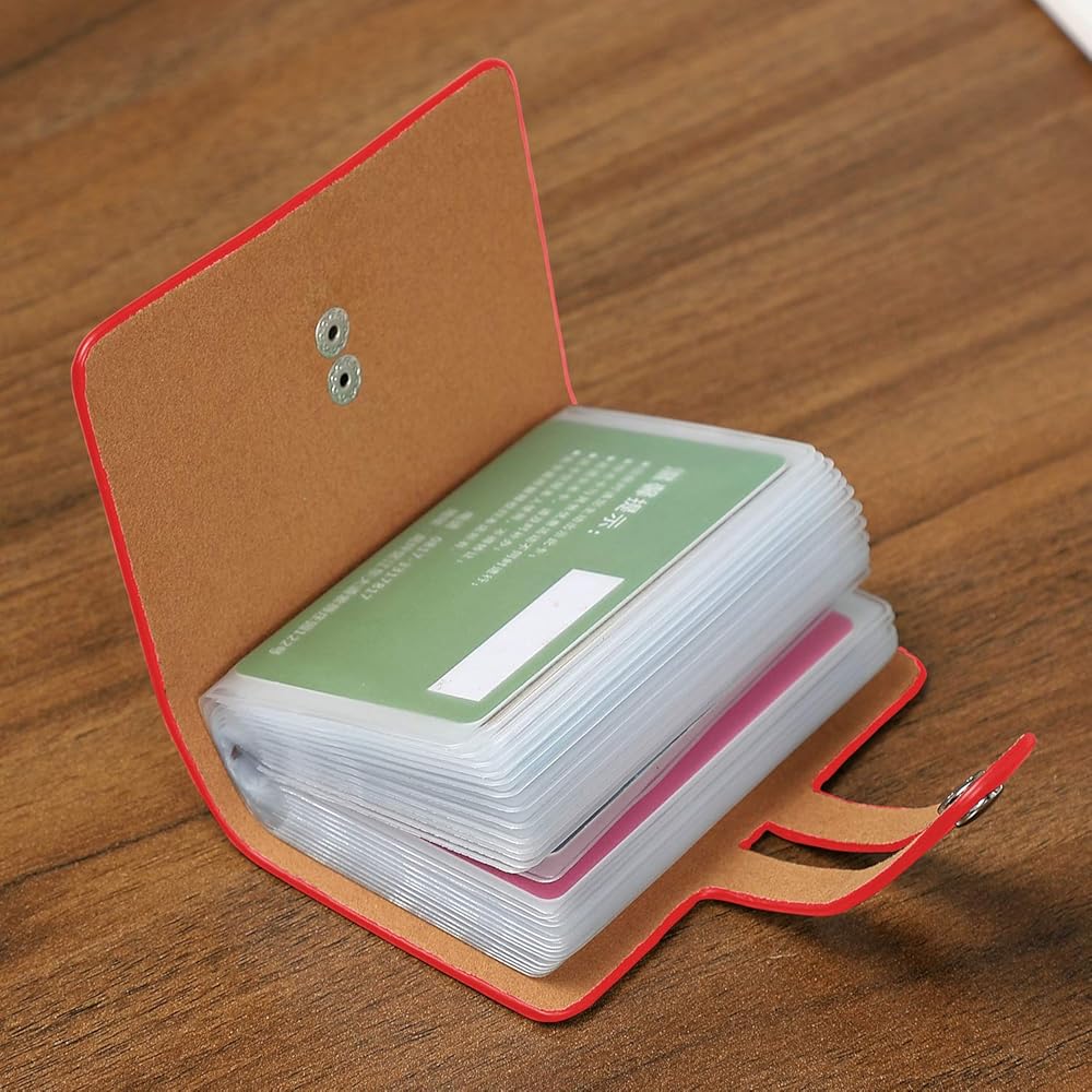 >>2. The internal card slot page uses a translucent PVC material to clearly see the picture and text of the card in the card holder so that you can find and manage the card. A metal button with adjustable tightness secures all cards in the credit card holder is the best way to prevent the loss of important credit cards.