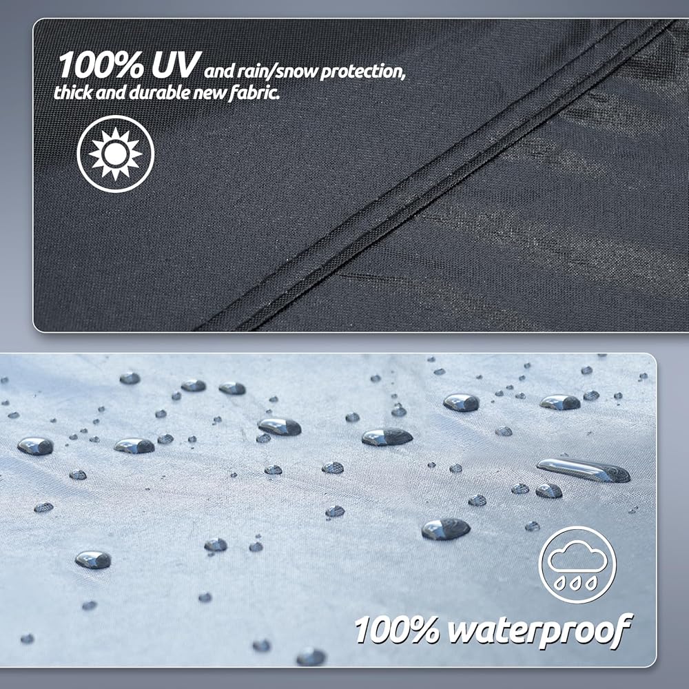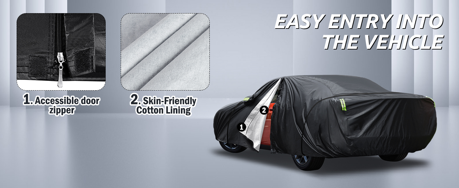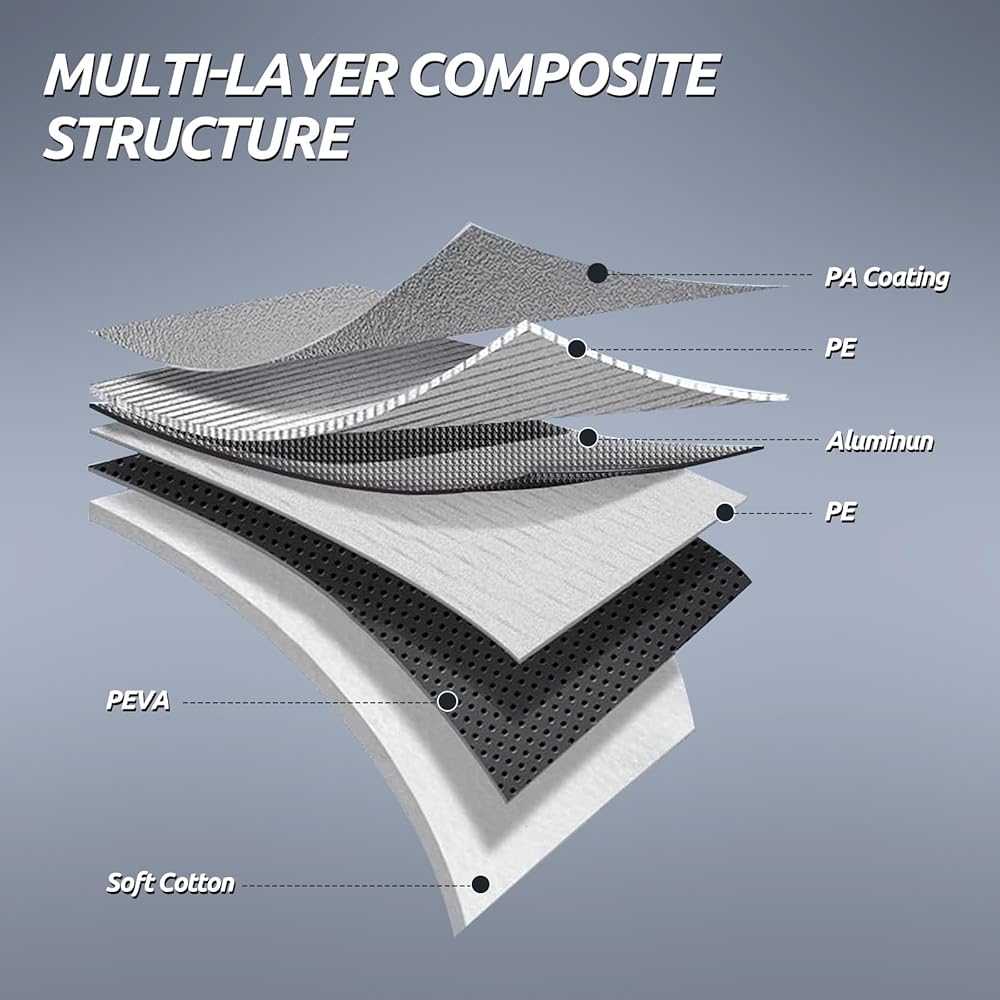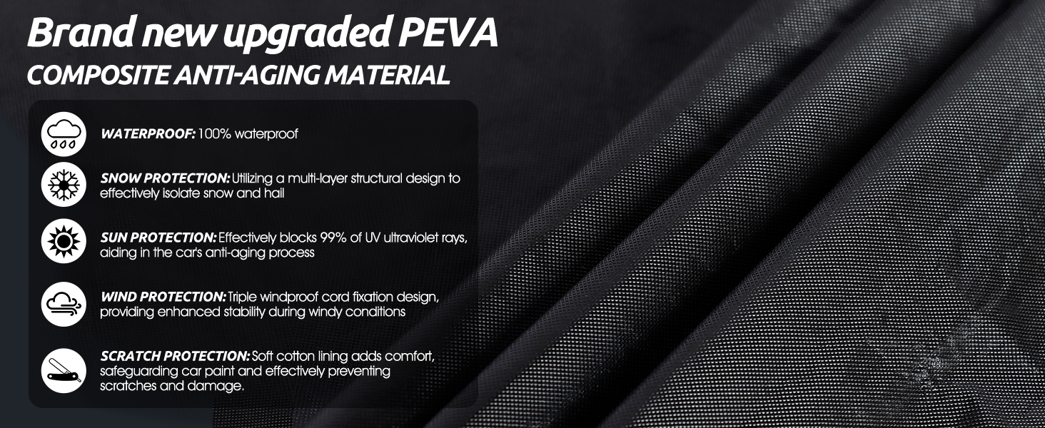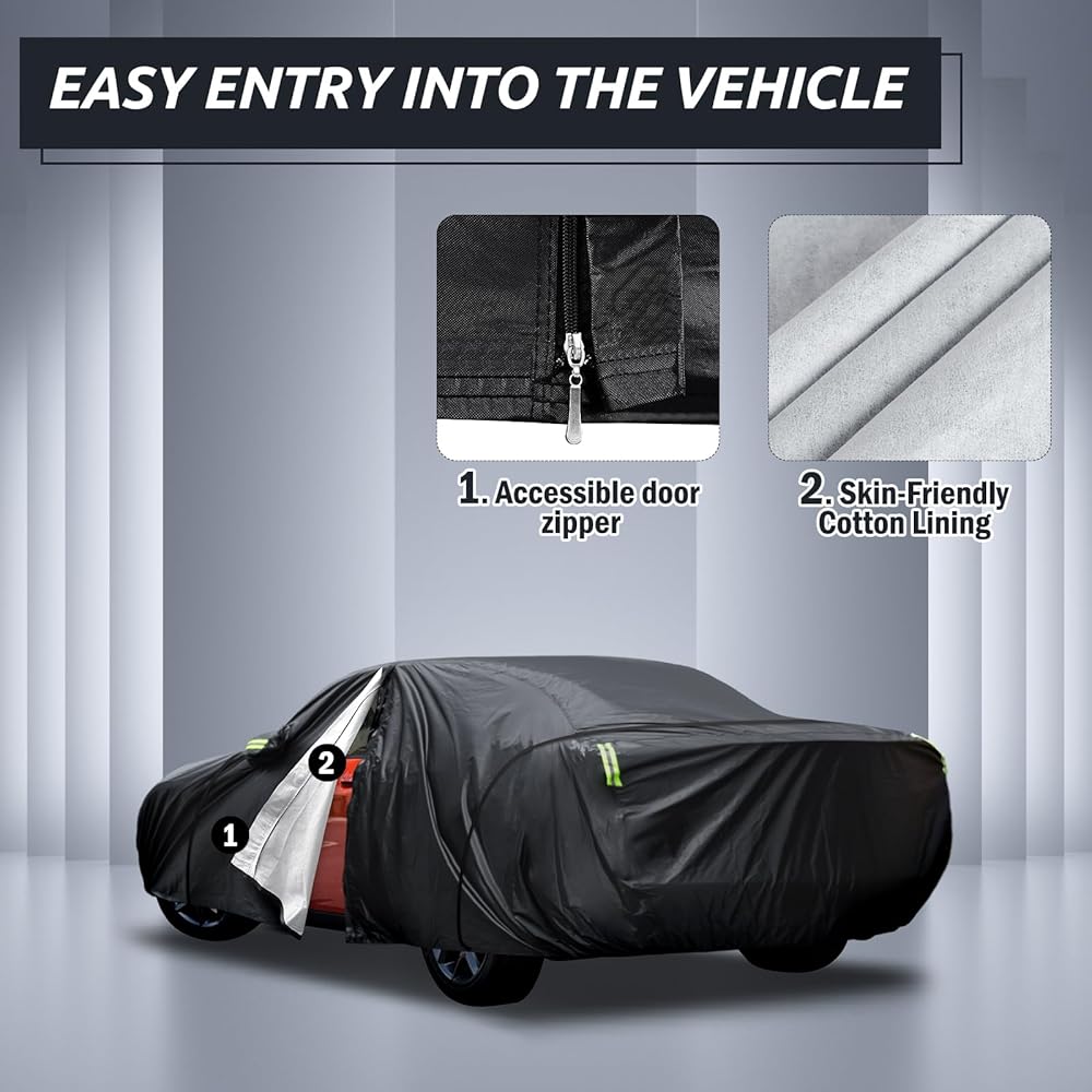 【خامة عالية الجودة】يتميز غطاء السيارة Migavne بتصميم مادة مركبة متعددة الطبقات. الطبقة الأولى عبارة عن طلاء PA، مما يوفر مقاومة للماء بنسبة 100%. تتكون الطبقات الثانية من مادة PE، مما يعزز التهوية ويحافظ على درجات الحرارة الداخلية المناسبة. الطبقة الثالثة عبارة عن غشاء من الألومنيوم يعكس 99% من الأشعة فوق البنفسجية، مما يقلل من أضرار الأشعة فوق البنفسجية. الطبقات 4-5 مصنوعة من مادة PEVA، مع مقاومة قوية للتمزق للحفاظ على السلامة في الطقس القاسي. الطبقة السادسة مصنوعة من القطن الناعم، مما يحمي طلاء السيارة بشكل فعال.