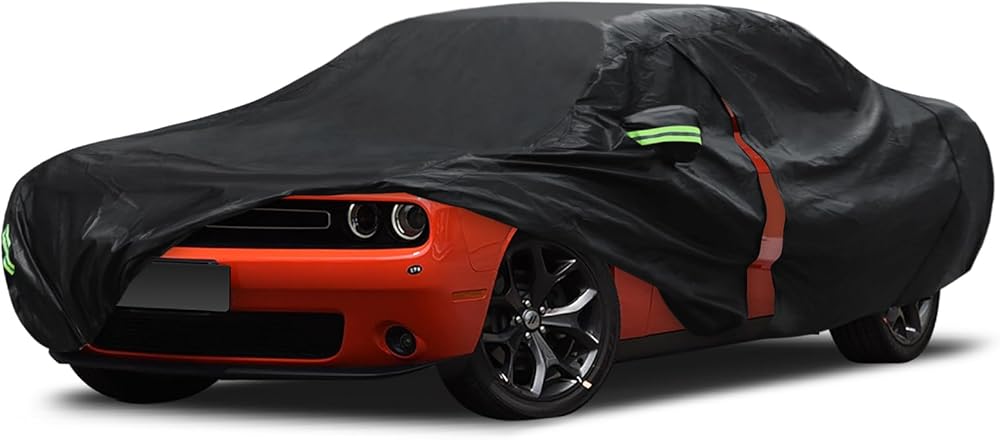 غطاء سيارة ميجافين 6 طبقات مناسب خصيصًا لسيارة دودج تشالنجر 2008-2023، غطاء خارجي مقاوم للماء بالكامل حماية من المطر وأشعة الشمس مع سحاب الباب والقطن الداخلي
