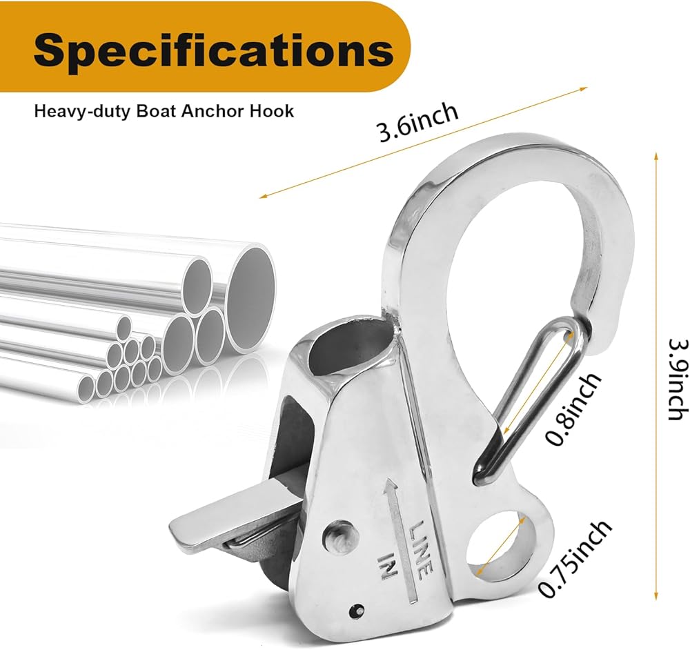 SIZE: Pack of 1, including boat anchor rope hook and boat anchor line clip; Applicable rope diameter: for 3/8"-5/8" dock ropes