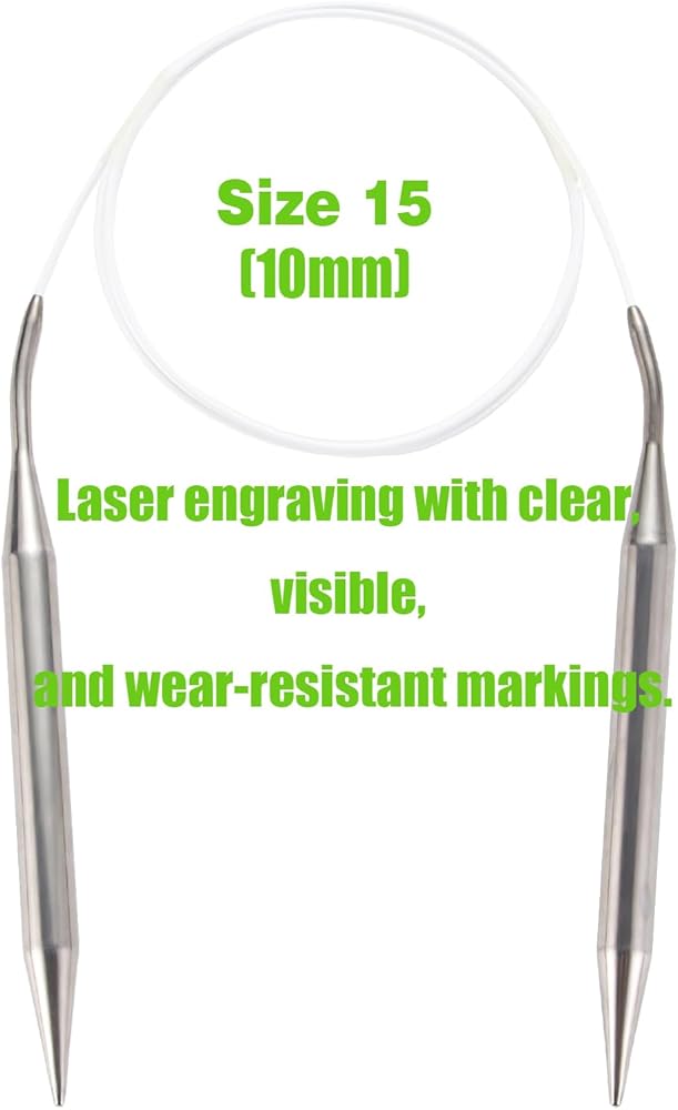تتضمن مقاس 13. يبلغ طول كل إبرة 5.9 سم. يبلغ طول الحبل السلكي 27.5 بوصة. الطول الإجمالي 40 بوصة (حوالي 100 سم)، وهو مناسب جدًا لمشروعات الحياكة الكبيرة مثل السترات. تتضمن مقاس 8. يبلغ طول كل إبرة 5.9 سم. يبلغ طول الحبل السلكي 27.5 بوصة. الطول الإجمالي 40 بوصة (حوالي 100 سم)، وهو مناسب جدًا لمشروعات الحياكة الكبيرة مثل السترات.