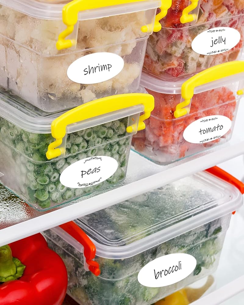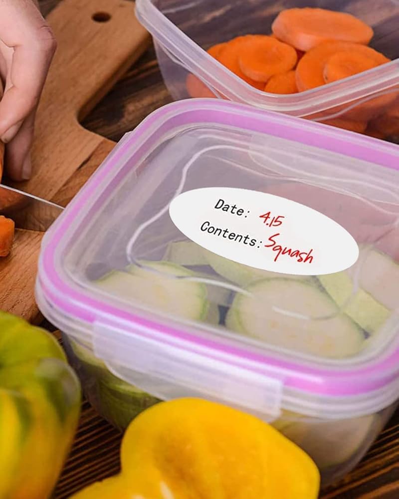 • 【مساعد المطبخ】يمكنك كتابة التاريخ والمحتويات باستخدام قلم زيتي مثل قلم حبر جاف أو قلم حبر جل على ملصقات تخزين الطعام هذه، فهي مريحة وسهلة بالنسبة لك للتعرف على الطعام الداخلي في الحاويات.