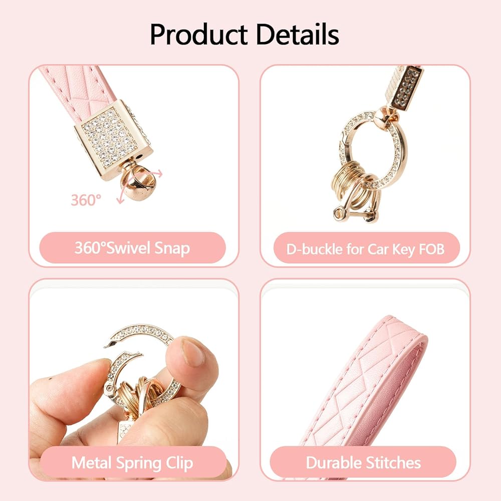 【Delicate and Durable】The leather keychain is made of quality leather and metal with exquisite crystal diamond on the surface, which is scratch-proof and rust-proof, and delicate and soft to touch.