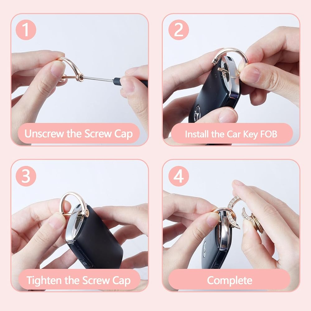 【Safer and Easier to Use】The anti-lost D-shape buckle with screw cap helps lock your smart fob, you do not need worrying about losing it and fall off. We will give away a screwdriver to help you open the D-ring. The key chains for car keys is designed with a quick release spring clip that is easy to press and snap back.