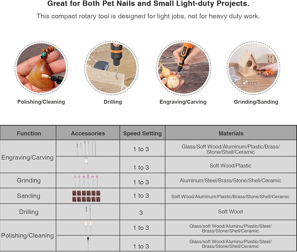 ★إعداد ثلاث سرعات - اضبط بين السرعة العالية/المتوسطة/المنخفضة (5,000 و10,000 و15,000 دورة في الدقيقة) لتتناسب مع السرعة المناسبة المطلوبة، مما يسمح لك بطحن الأظافر بأمان وبعناية على مراحل.