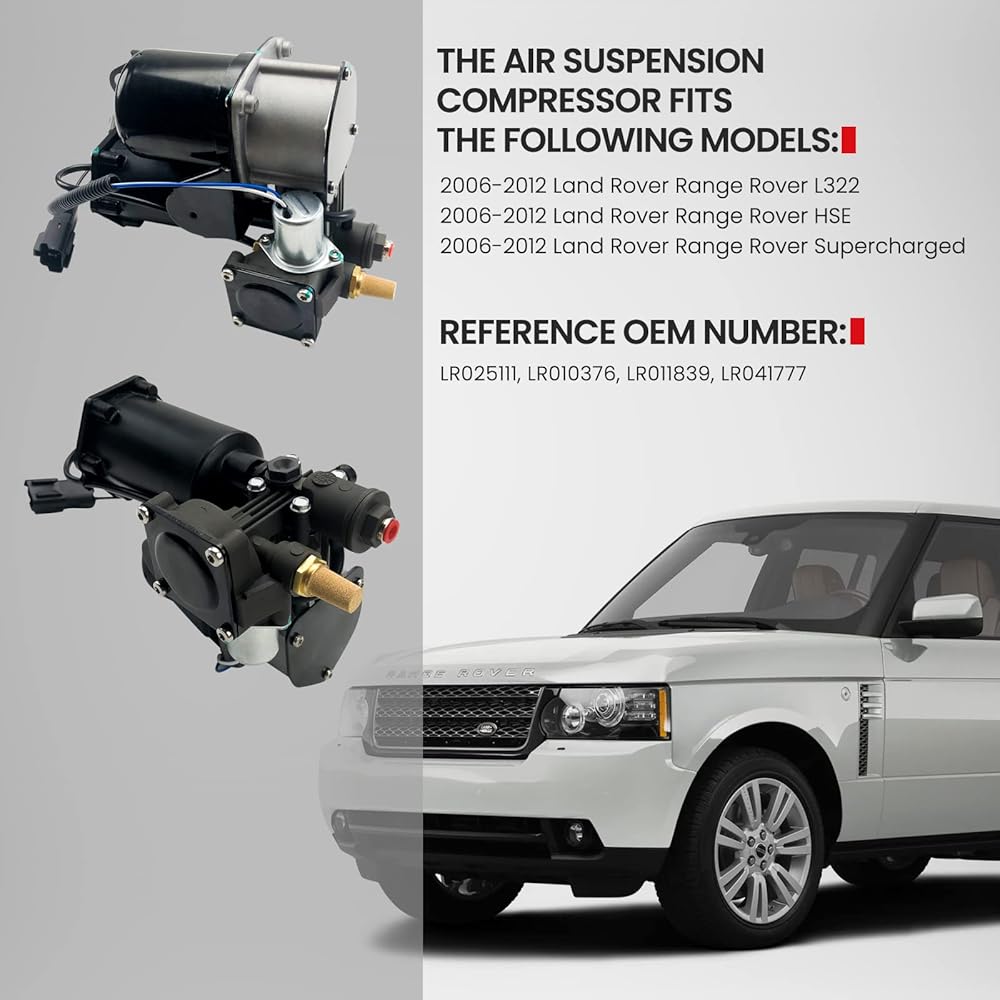 قائمة توافق نماذج المركبات: ضاغط تعليق هوائي متوافق مع سيارة Land Rover Range Rover L322، HSE، Supercharged Hitachi Type 2006-2012.