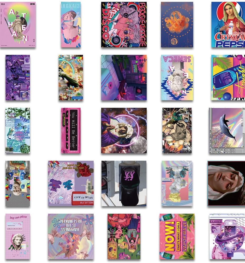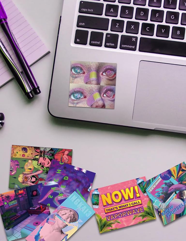 The sticker set includes 50 water bottle vaporwave stickers, all of which are 2" to 3" in size and designed for all kinds of people. Stylish stickers make your water bottle and laptop stylish and vibrant. All our colorful stickers are made of high quality PVC. The stickers will stay glossy and bright for a long time. Clearly visible images, no duplication. Perfect to decorate laptops, backpacks, skateboards, luggage, cars, bumpers, bikes, bicycles, bedroom, travel bag, motorcycle, snowboard, PS4, XBOX ONE. Feel free to customize your belongings, let your personality shine! Clean the surface, then stick on. Use your imagination to create any combination of your life with our unique stickers.