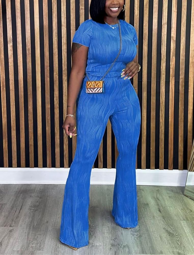 الميزات: ملابس نسائية من قطعتين، رقبة مستديرة، بدلة رياضية بأكمام قصيرة، ملابس كاجوال، مقاس نحيف، سراويل طويلة عالية الخصر، ملابس مطوية من قطعتين، غير مبطنة، سراويل واسعة الساق، غير شفافة. طقم كتان نسائي 2 قطعة