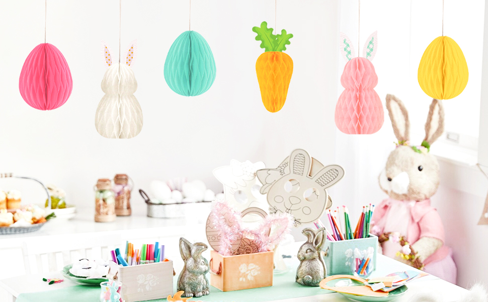 🐰مادة عالية الجودة: زينة عيد الفصح للمنزل مصنوعة من ورق متين لن يتمزق عند طيها أو قصها أو تجعيدها. كلاهما قوي وجميل.