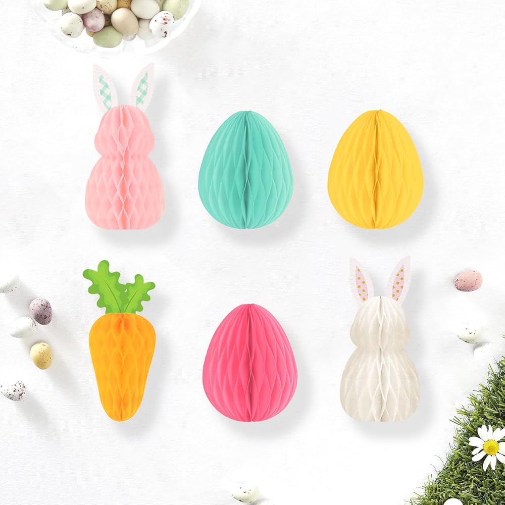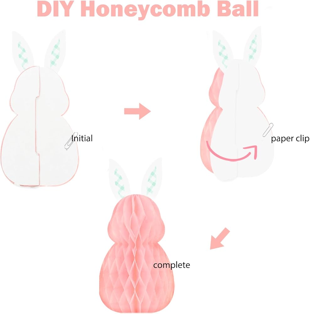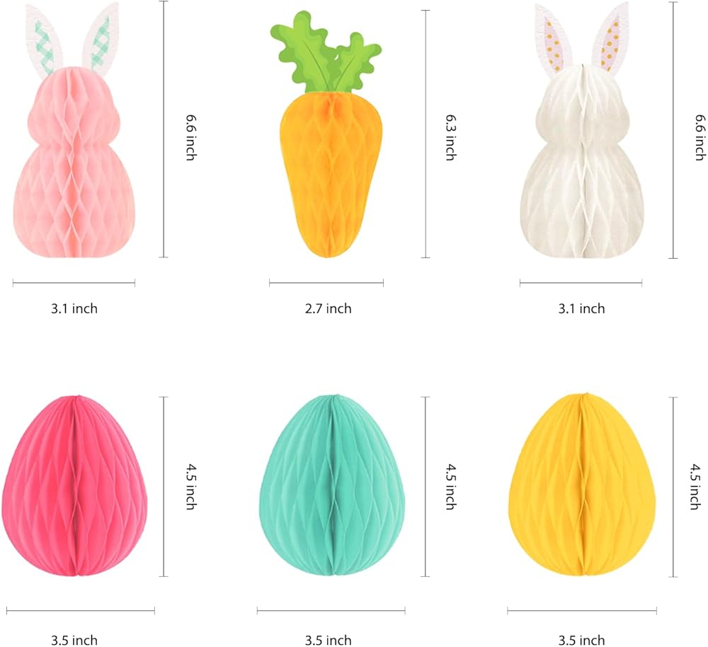 🐇مجموعة قيمة رائعة: تحتوي مجموعة ديكور عيد الفصح على قطعتين من الأرانب الورقية على شكل قرص العسل مقاس 6.6 بوصة، وقطعة واحدة من الجزر الورقية على شكل قرص العسل مقاس 6.3 بوصة، و3 قطع من كرات قرص العسل الورقية مقاس 4.5 بوصة لتلبية احتياجات تزيين حفلات عيد الفصح.