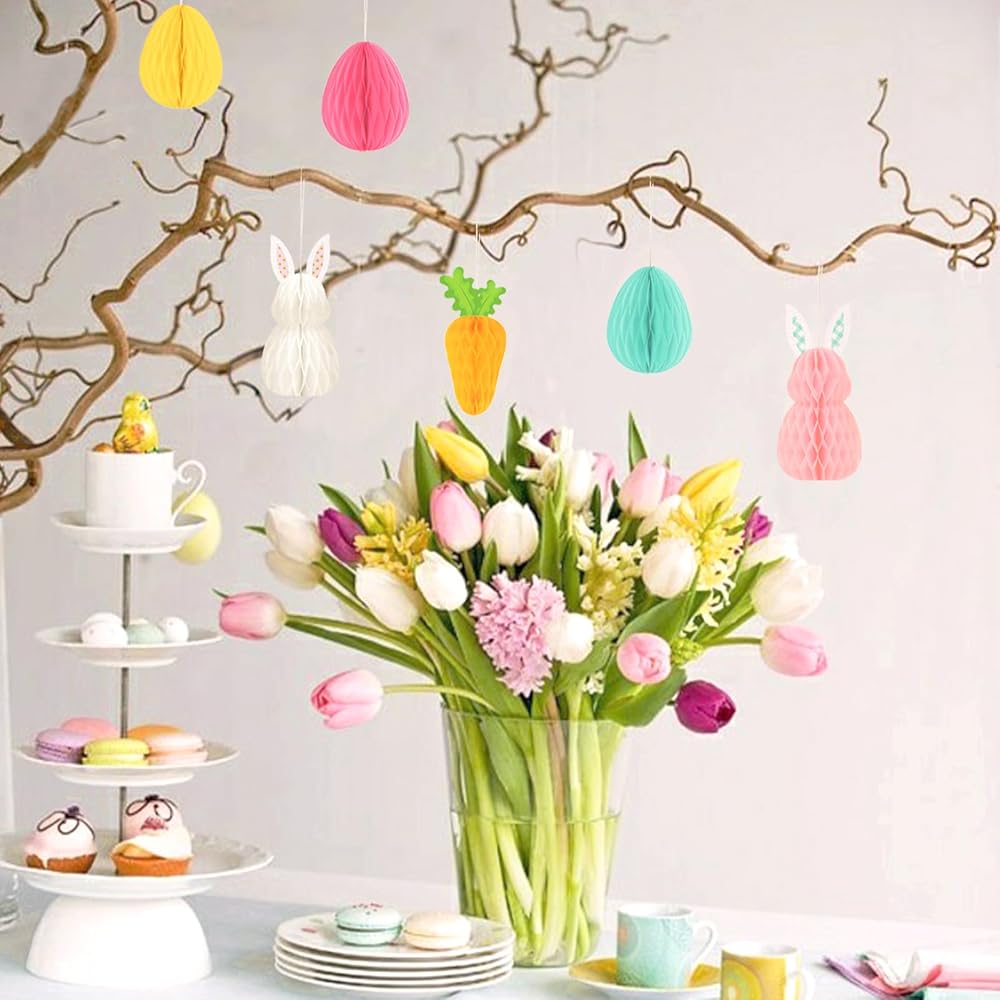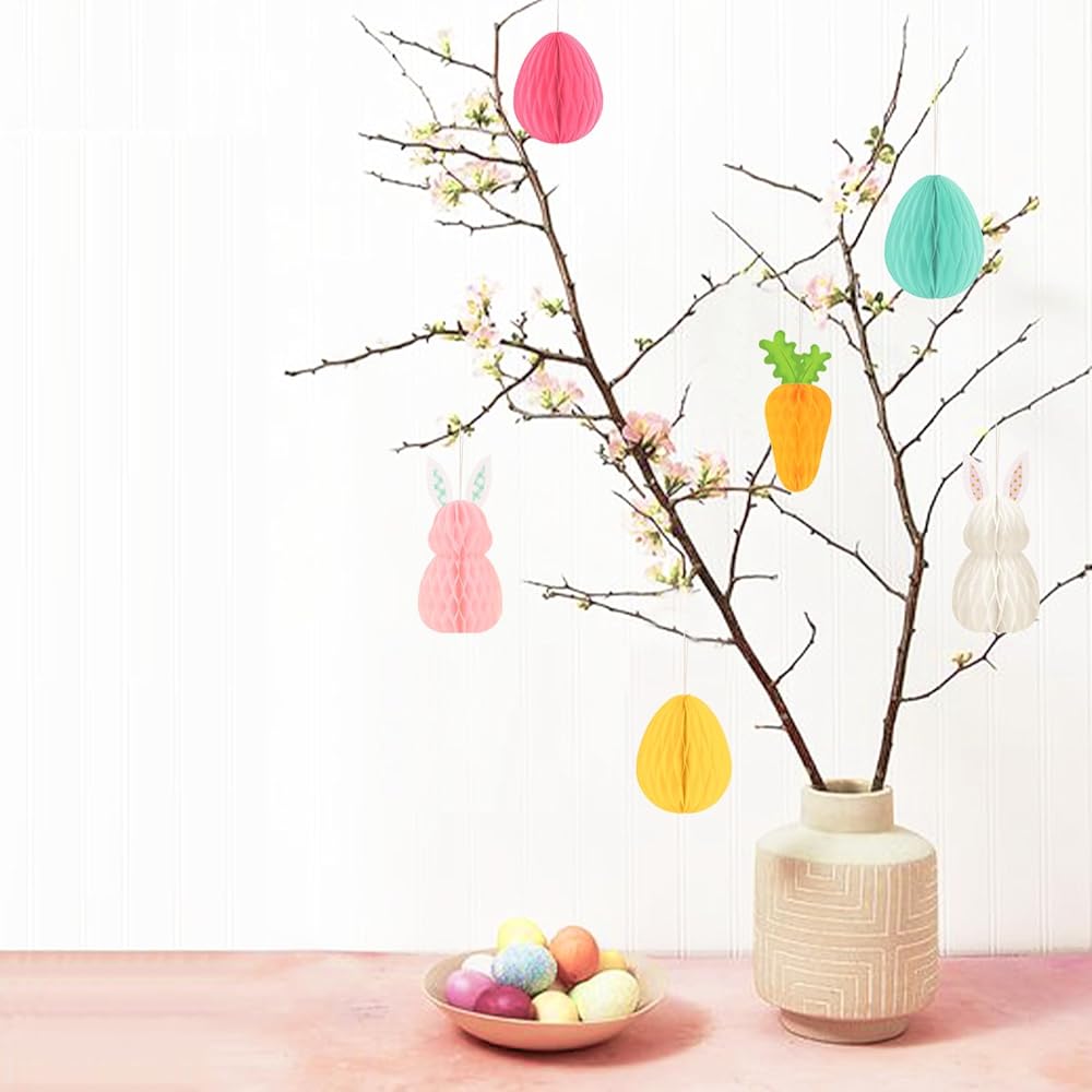 🐰 زينة أكواب العسل الورقية المعلقة: هذه الحلي الجميلة لشجرة بيض عيد الفصح هي إضافة جميلة لديكورات شجرة عيد الفصح. ستجذب زخارف عيد الفصح الجميلة هذه المزيد من الاهتمام وستكون بمثابة حفلة عيد الفصح التي لا تُنسى بشكل خاص.