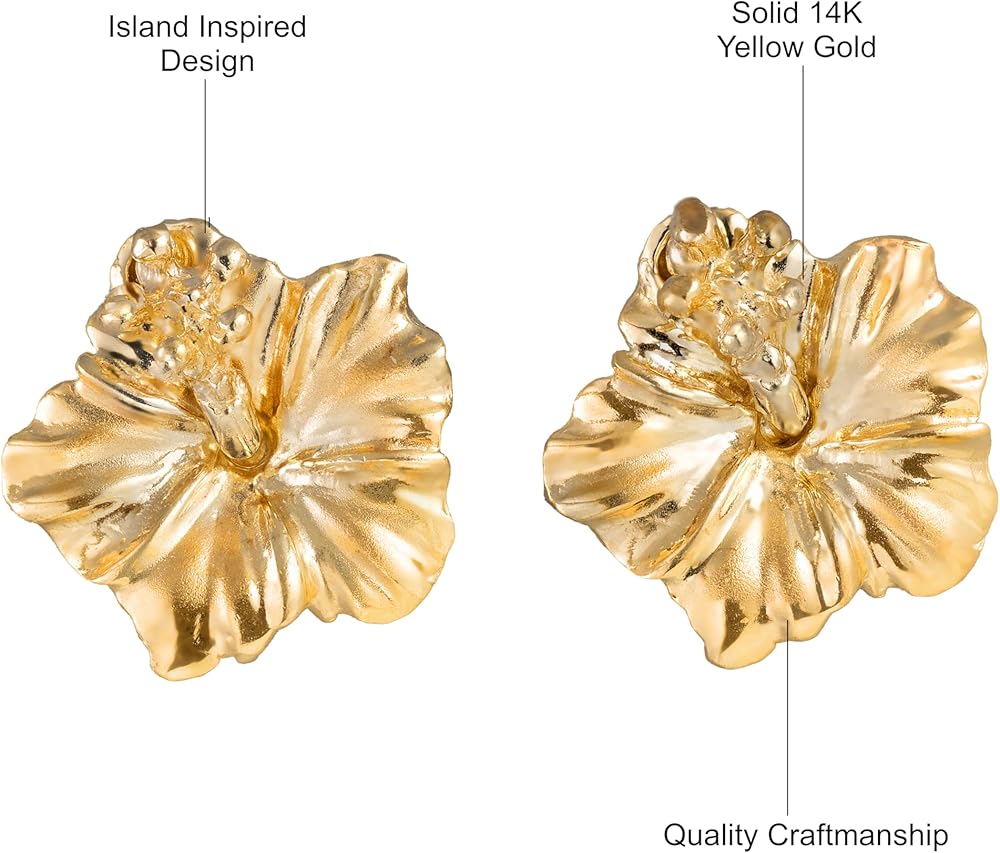 أقراط زهرة الكركديه هاواي من الذهب الأصفر الخالص عيار 14 قيراط، خالية من النيكل ولا تسبب الحساسية للبشرة الحساسة، للأم والابنة، يتضمن صندوق هدايا