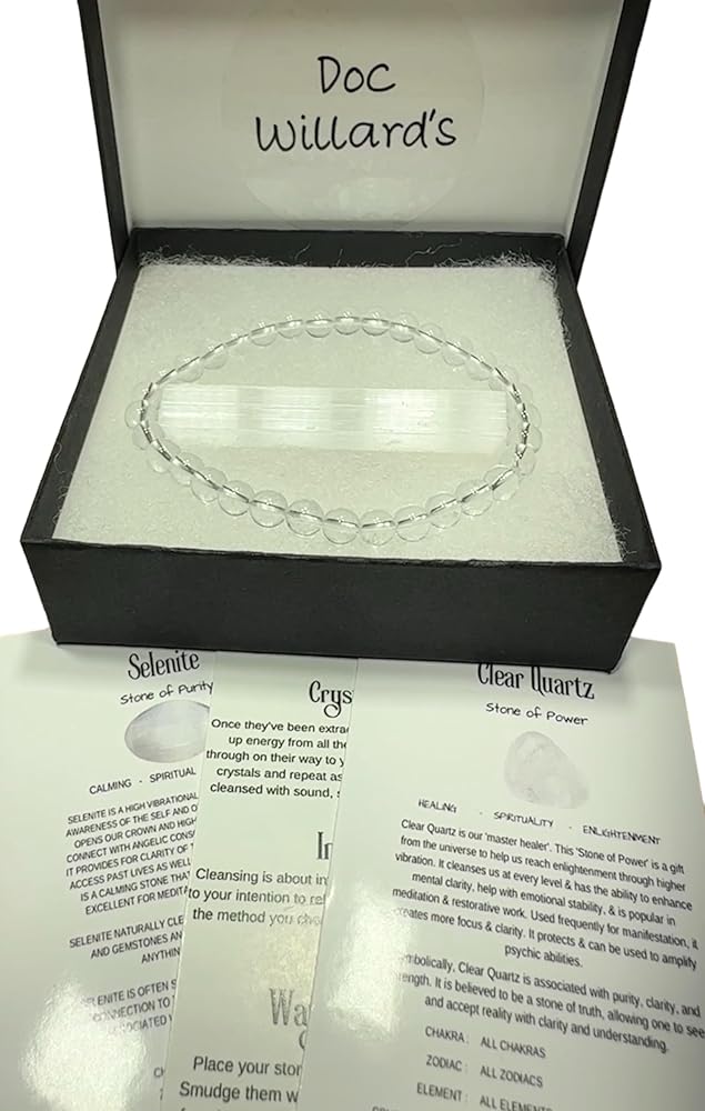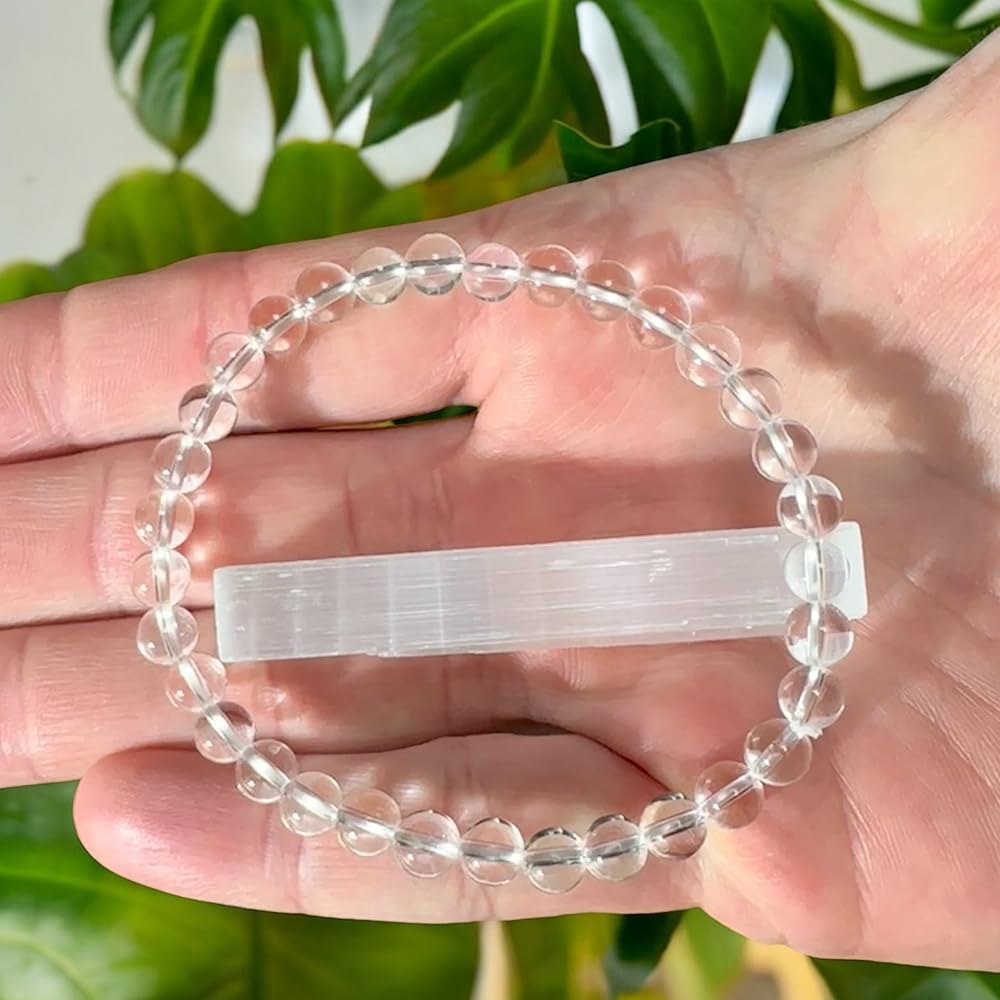 The Clear Quartz 6mm Bracelet is a beautiful piece of jewelry that is not only aesthetically pleasing but also has a number of healing properties. The bracelet is made of clear quartz, which is known for its ability to amplify energy and promote clarity of thought. The clear quartz also helps to balance the body's energy and promote overall well-being. The bracelet is also accompanied by a complimentary selenite crystal, which is known for its ability to cleanse and purify the energy of the crystals and the body. The selenite crystal also helps to promote a sense of clarity and focus. This is a great gift for anyone who is interested in healing or self-care.