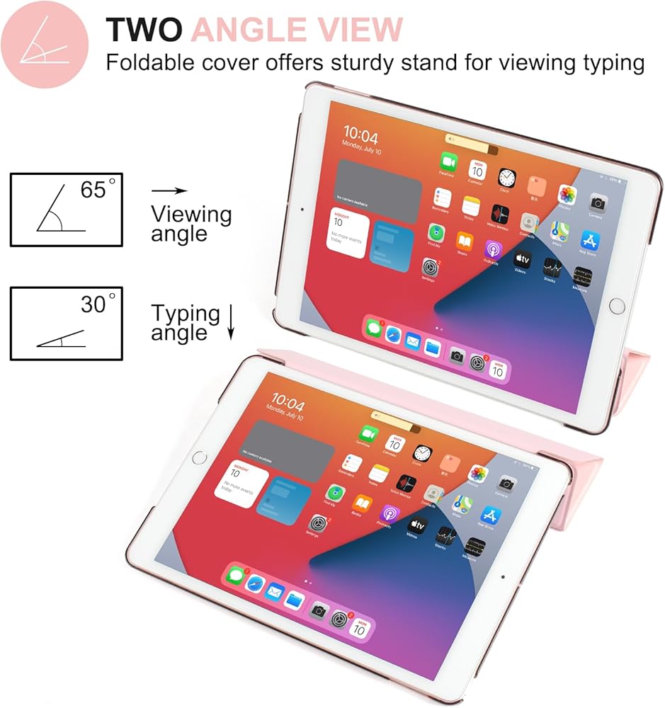 • Trifold Stand 10.2 Case for iPad: The trifold stand case compatible with iPad 7th Generation 2019 offers a sturdy and secure stand for your tablet, which can be adjusted to two different angles. The angle of 30° is appropriate for working and everyday chatting, whereas the angle of 65° is perfect for watching movies. Enables you to use your hands freely.