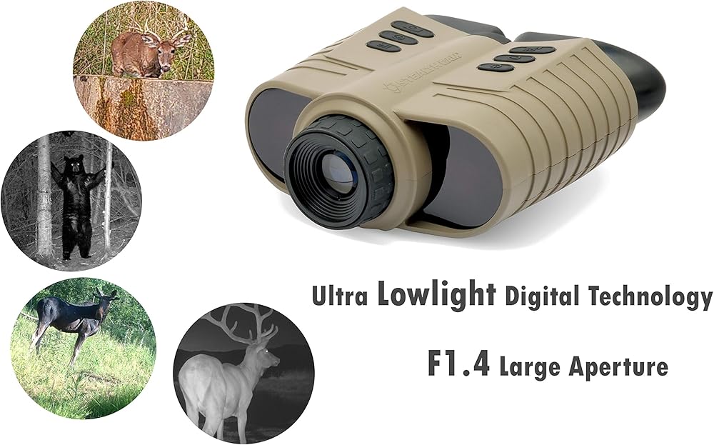 Digital Night Vision Electronic View Finder F1. 4 Large Aperture IR LED Picture Shooting & Video Taking Capable Visible Distance: 100 m (110 yards) at Night, 400 m (440 yards) at Day Zoom in and out Capable (2X zoom in) Battery Life: Up to 10 hours for Day Use, 6 hours for Night Use.