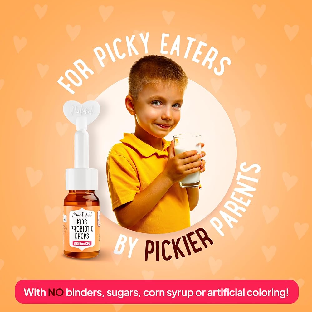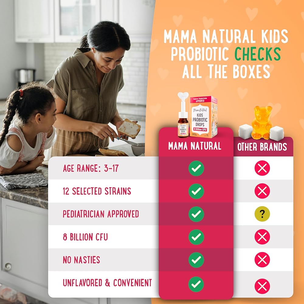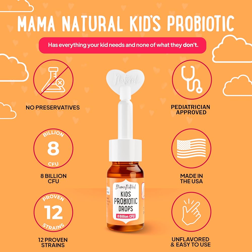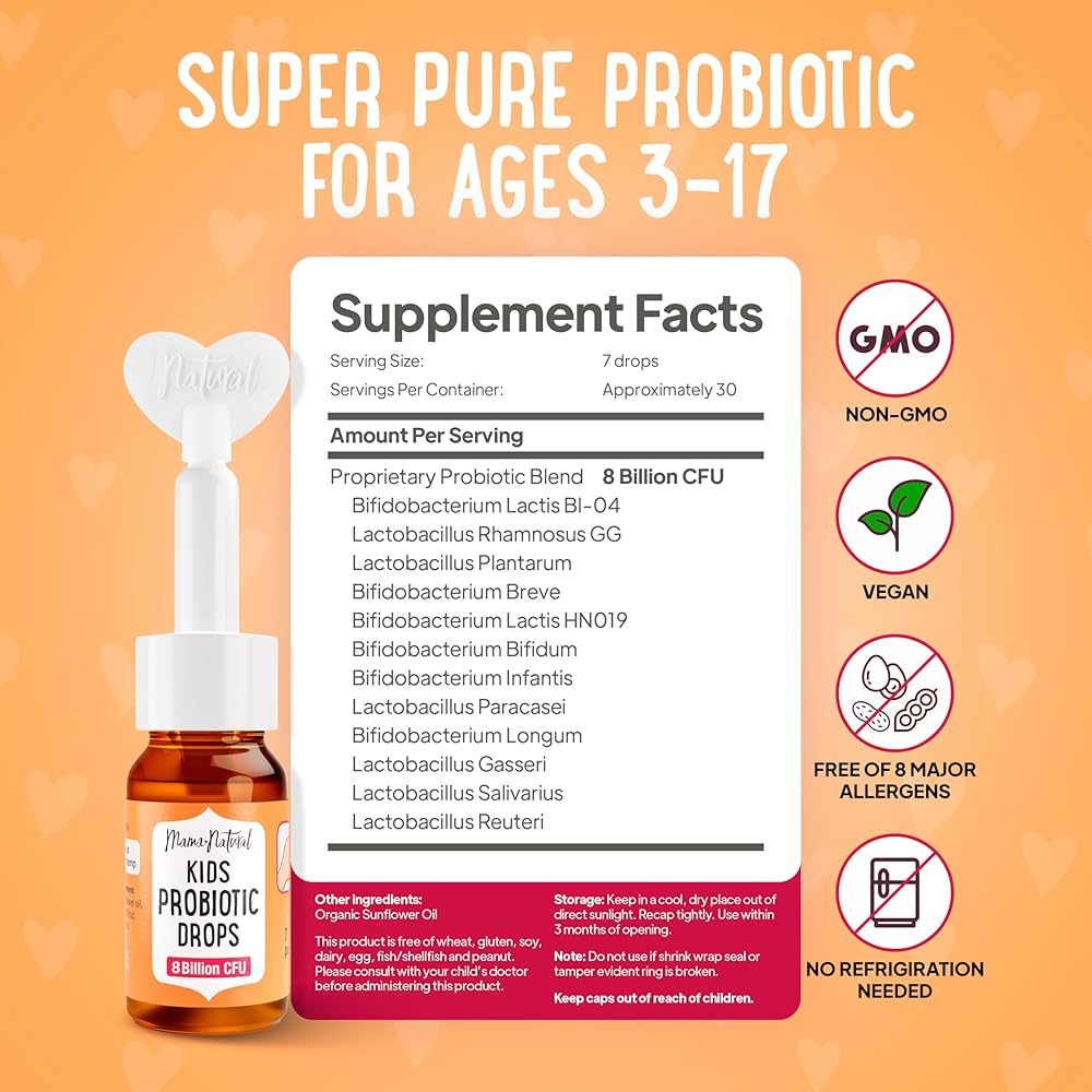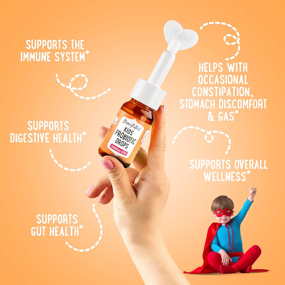 قطرات بروبيوتيك من ماما ناتشورال كيدز (عمر 3 سنوات فما فوق) | بروبيوتيك للأطفال الصغار لصحة الجهاز الهضمي ودعم المناعة - بروبيوتيك معتمد من أطباء الأطفال للأطفال | 30 حصة - بروبيوتيك سائل بدون نكهة