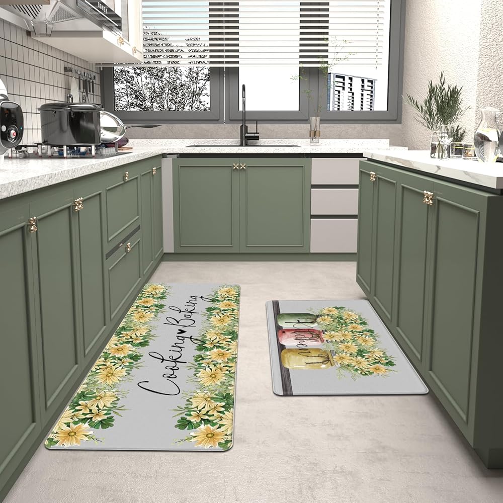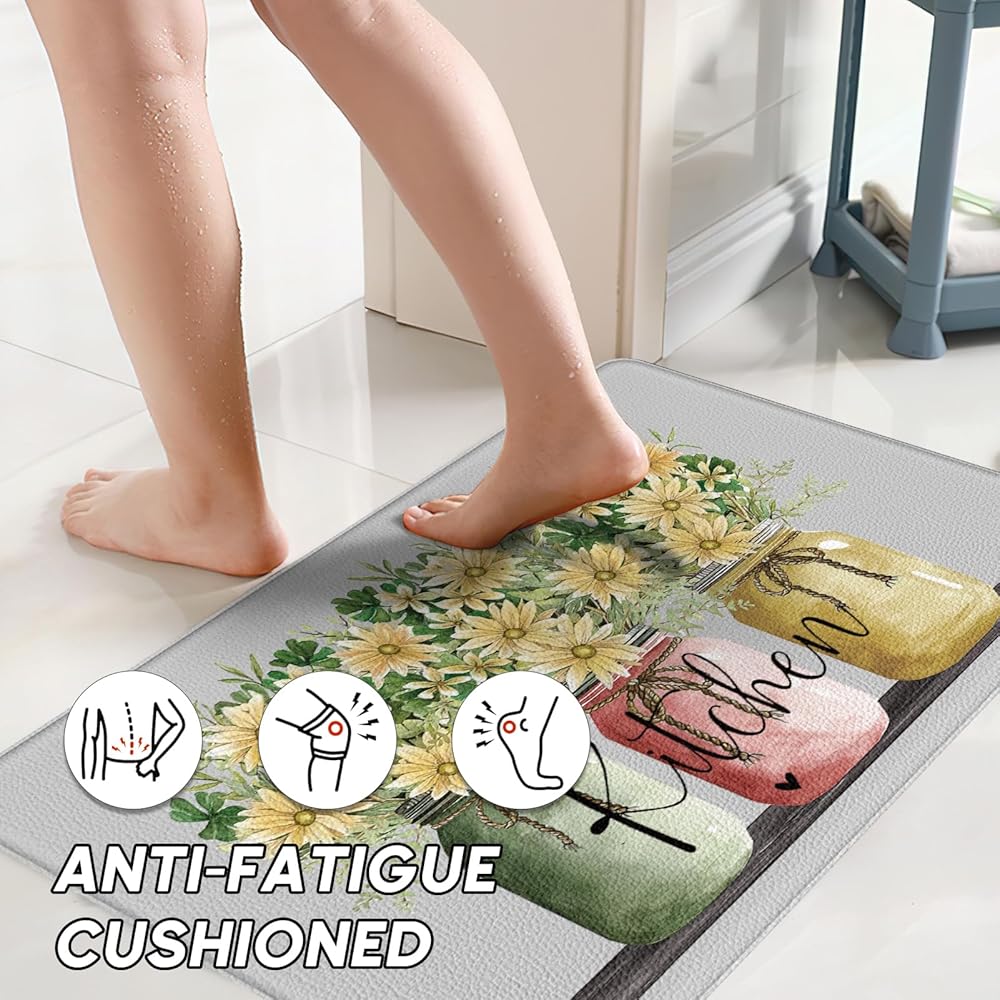 سجادة مريحة: هذه الممسحة القابلة للغسل ناعمة جدًا وتوفر وسادة واقفة لقدميك وركبتيك وأسفل الظهر والمفاصل عندما تخطو عليها. يمكن أن يساعدك بشكل فعال على تخفيف التعب أثناء العمل في المطبخ.