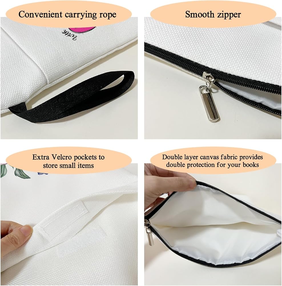 Zippered Closure - It comes with a hand strap and zipper for easy portability and can protect your books well. Made of high-quality cotton and linen with fine workmanship and washable. It's effortless to hold in your hand or put in your bag.