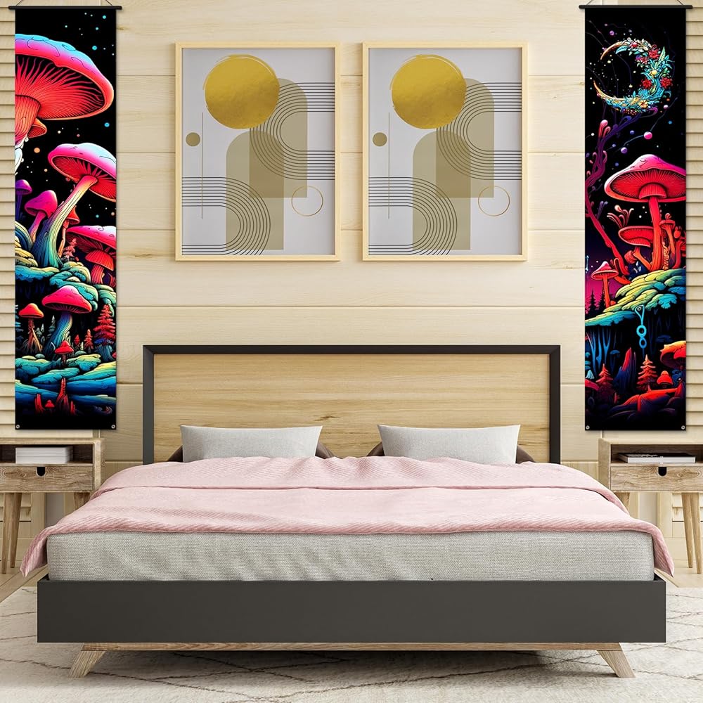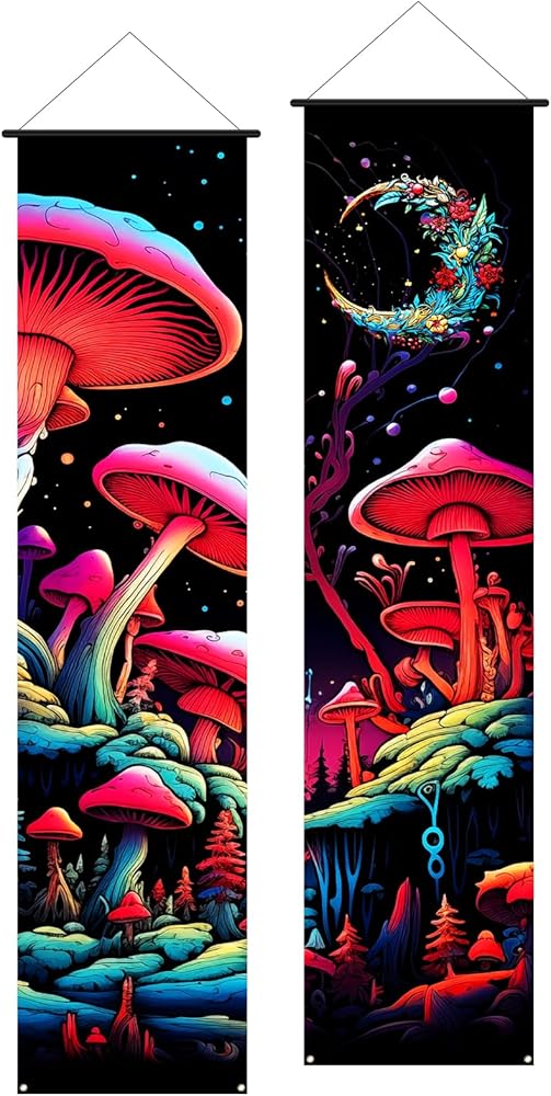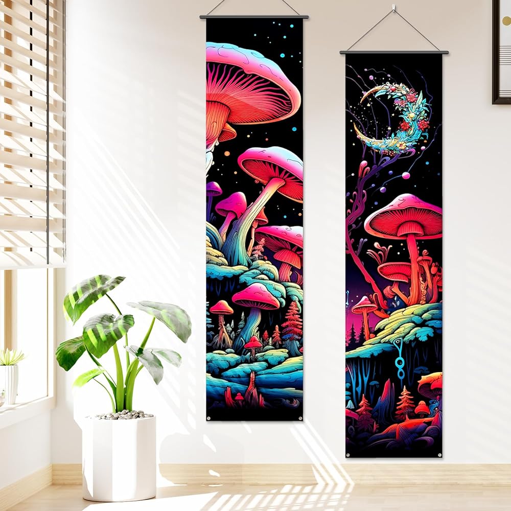 2 Pcs Mushroom Tapestry Wall Hanging Banner