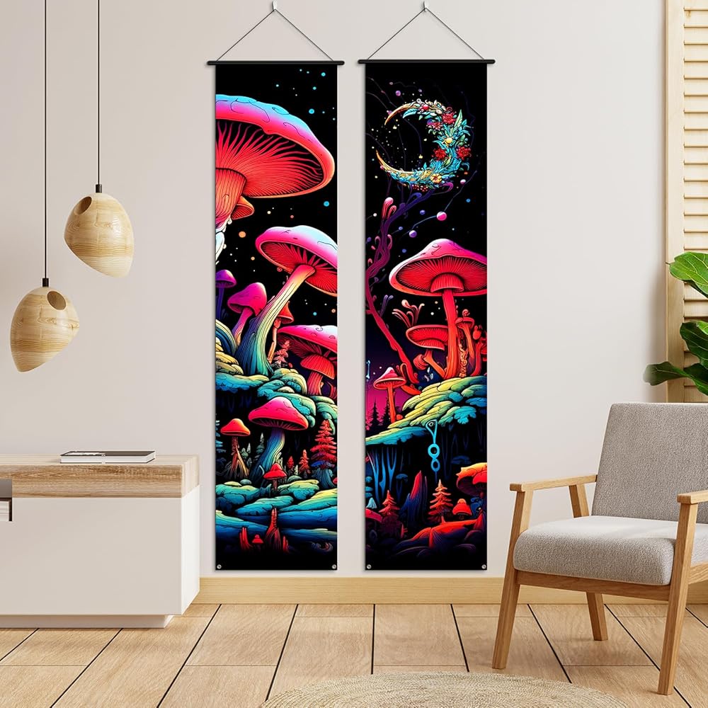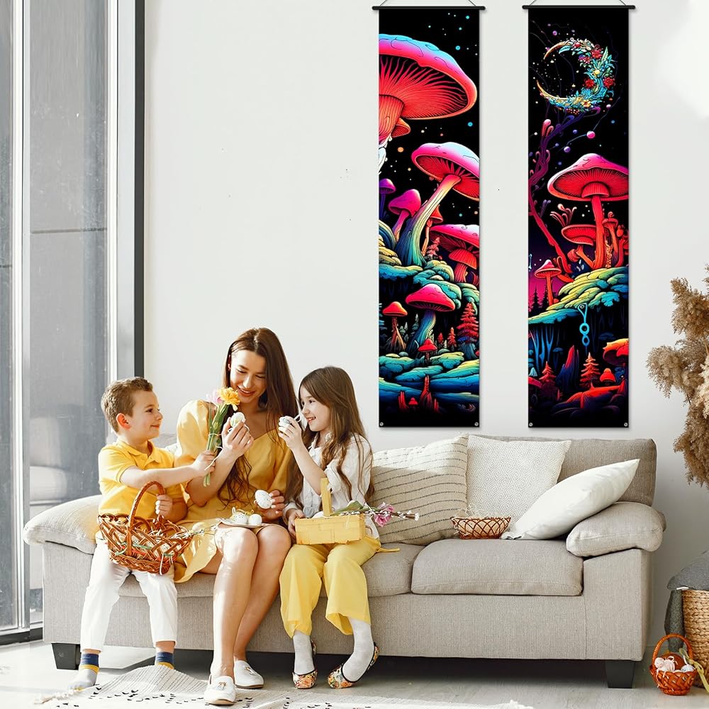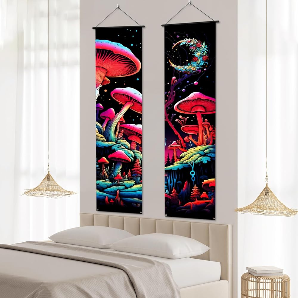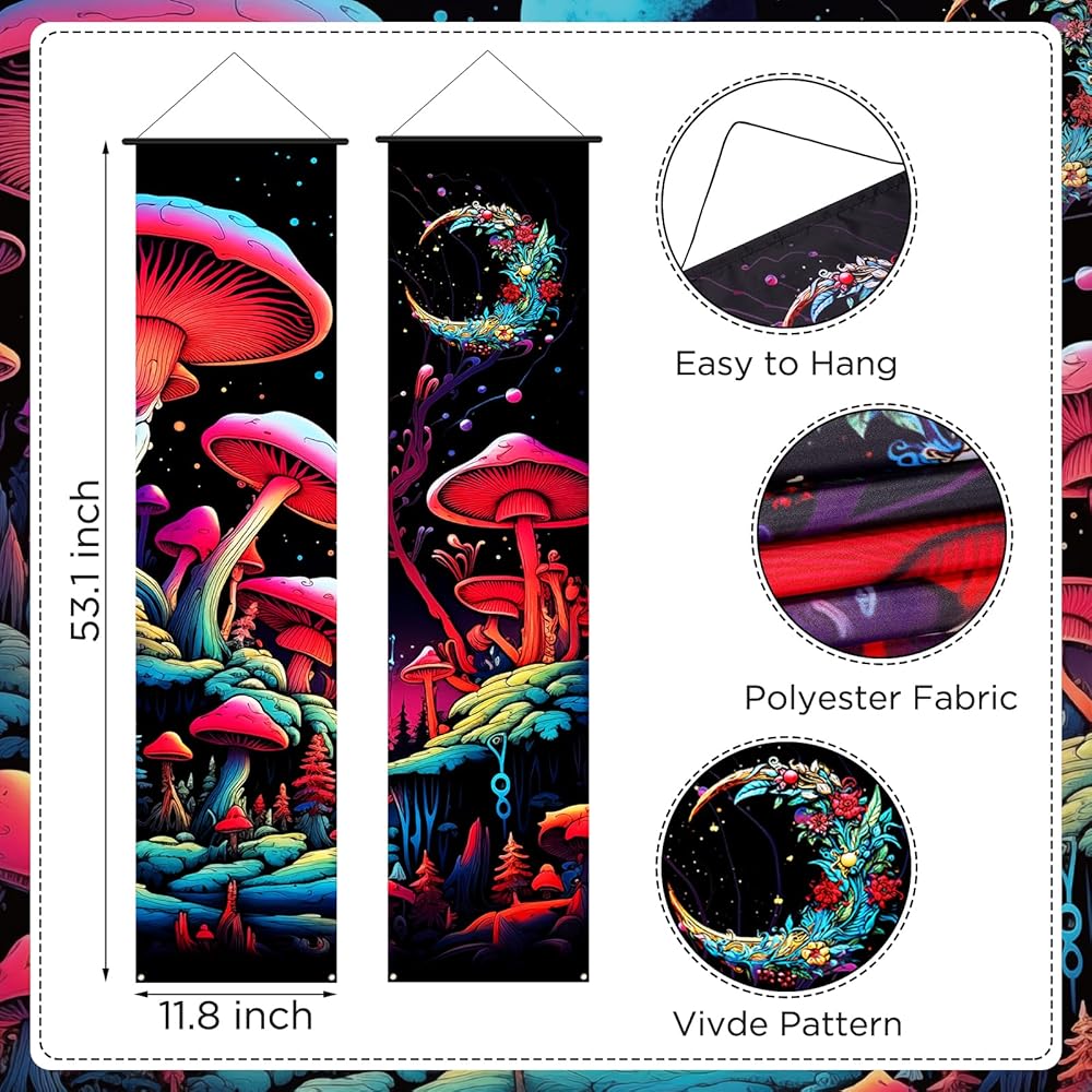 [Ideal for Multiple Uses]-These vertical mushroom wall hanging banners offer an unconventional and eye-catching alternative to traditional horizontal tapestries. they are a great choice for living room and bedroom wall decor and versatile enough to be used as an elegant backdrop for photography. what's more, it can be an excellent gift for friends and family who appreciate the hippie or bohemian lifestyle