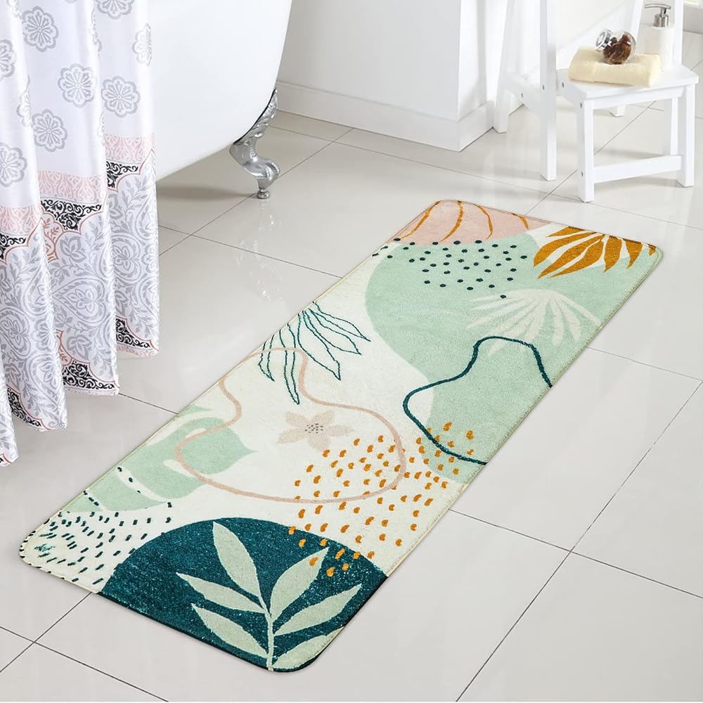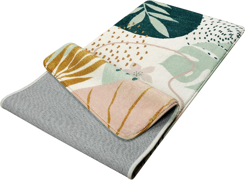 [تصميم تجريدي حديث:] تتميز سجادة الحمام التجريدية هذه بنمط أوراق النباتات الاستوائية الخضراء، وتتضمن جمالية بسيطة ومعاصرة. تضفي إحساسًا فنيًا وفاخرًا لمنزلك. ويمكن أن يمتزج هذا النمط الحديث مع أي ديكور منزلي موجود.