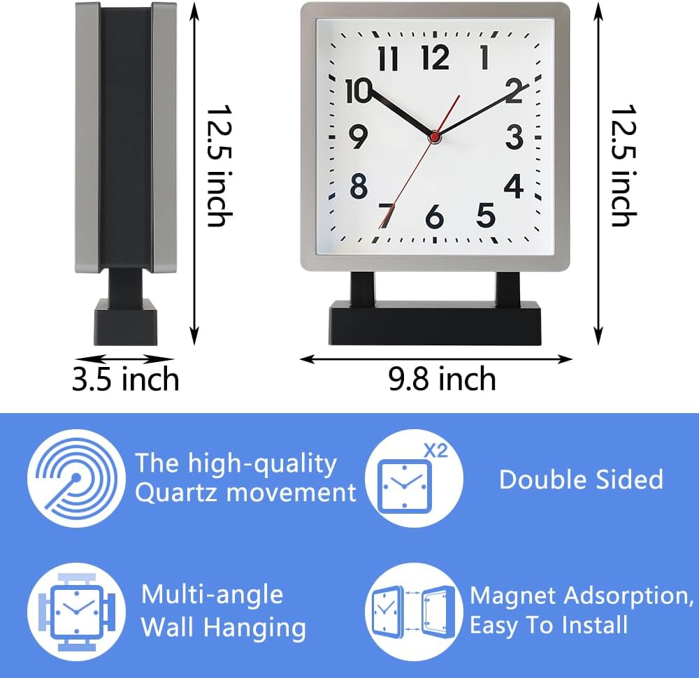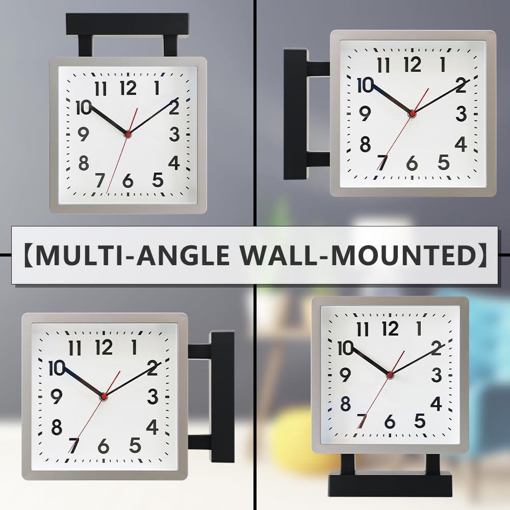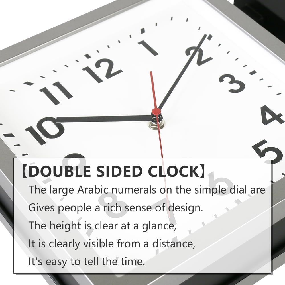 ساعة الحائط ذات الوجهين مصنوعة من مادة بلاستيكية. الإطار القوي والعدسة الزجاجية سهل التنظيف ويمنع دخول الغبار إلى وجه الساعة. يمكنك قراءة الوقت بسهولة باستخدام الأيدي السوداء والكريستال الزجاجي والقرص الخفيف. مصممة للتعليق من الجدران أو الأسقف الداخلية.