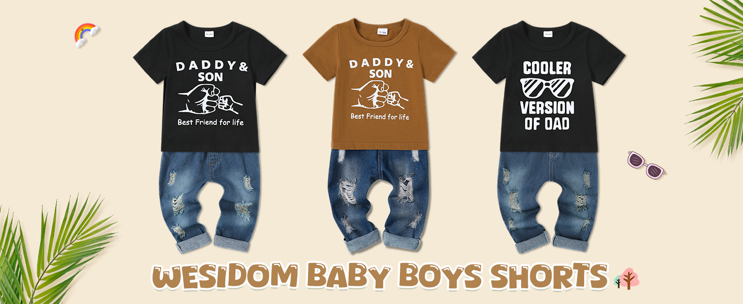 ملابس WESIDOM للأطفال الصغار، ملابس صيفية كاجوال بأكمام قصيرة، جينز ممزق 1-5T، ملابس أطفال أولادي، مجموعات ملابس للأطفال، بني